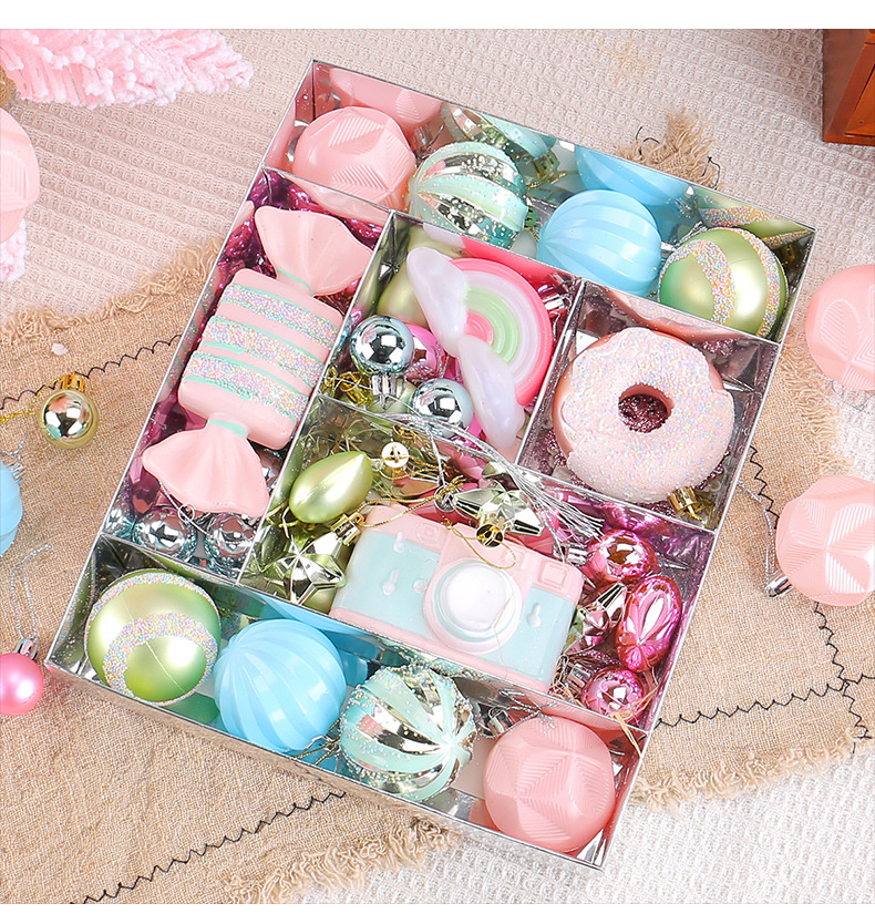 Navidad transfronteriza macaron set bolas de Navidad series de dulces de colorido bolas de plástico colgante árbol de Navidad