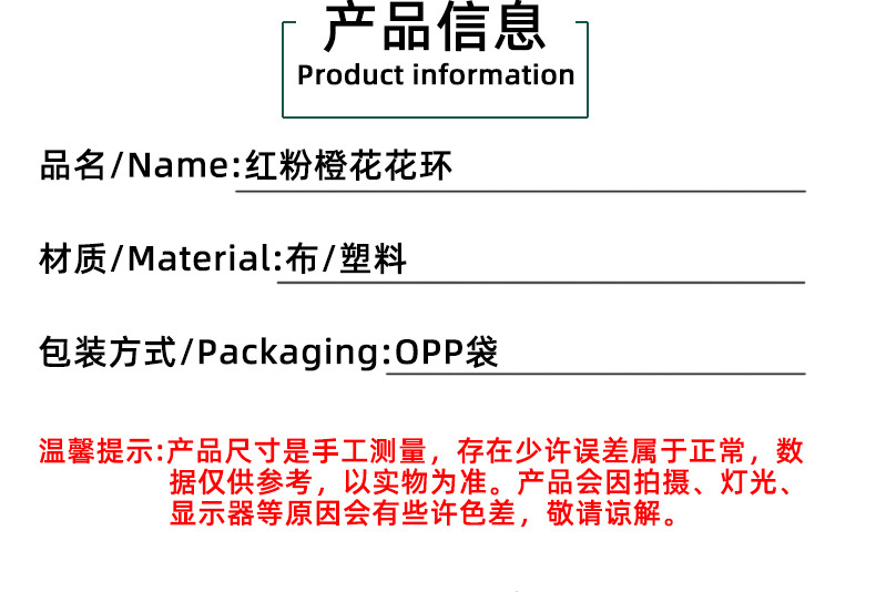 | Artículo No. | Rojo Rosa naranja flor guirnalda |