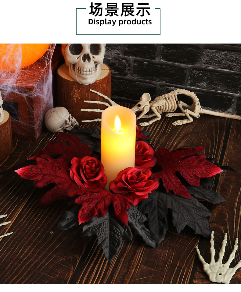 Vela de Halloween transfronteriza, corona, hoja de arce, candelabro de rosa, anillo decorativo, decoración de mesa, decoración, suministros de fiesta, decoración