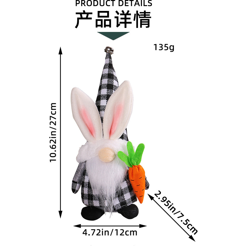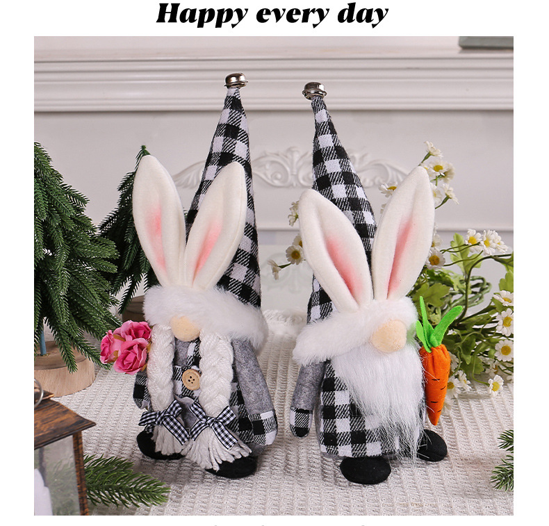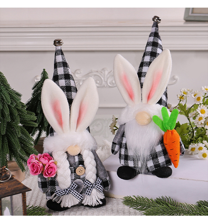 Hong Kong amor transfronterizo conejo de pascua 2023 nuevo blanco y negro Plaid felpa suelo blanco barba vieja muñeca Decoración