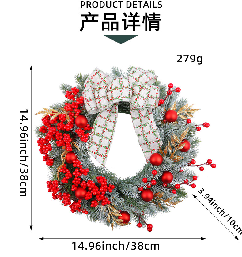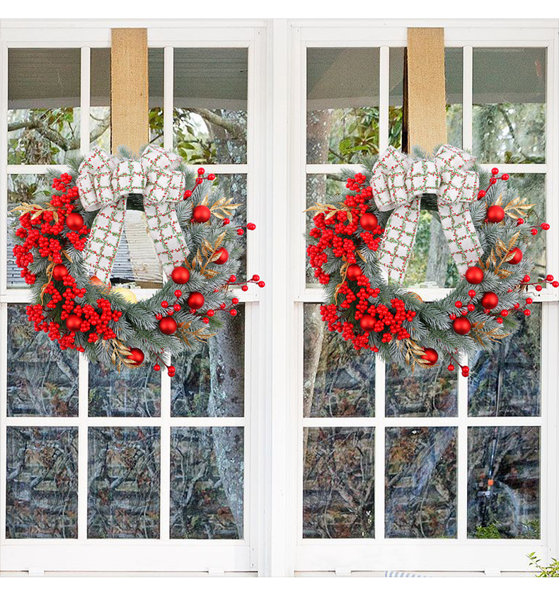 Navidad transfronteriza guirlandas de frutas rojas decorativas colgantes decorativos navideños bayas arco de vinas colgantes ventanas