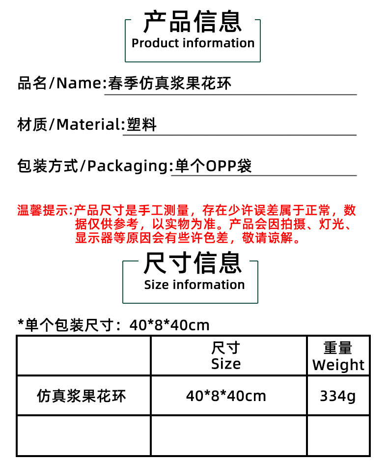 | Colores | W3-7 guirnalda de bayas de simulación de primavera |