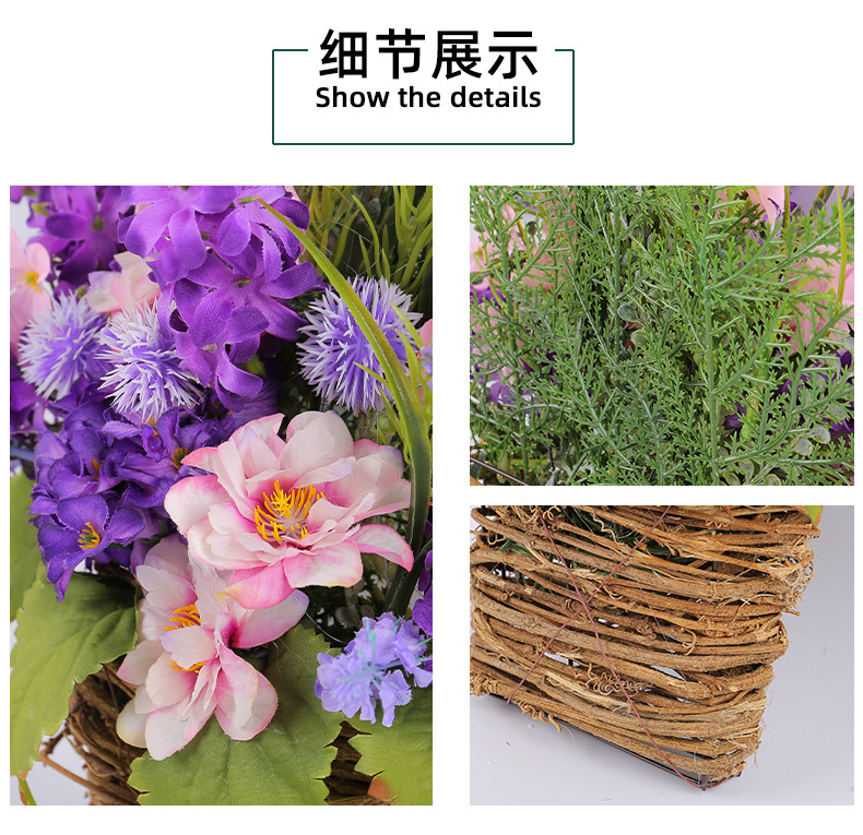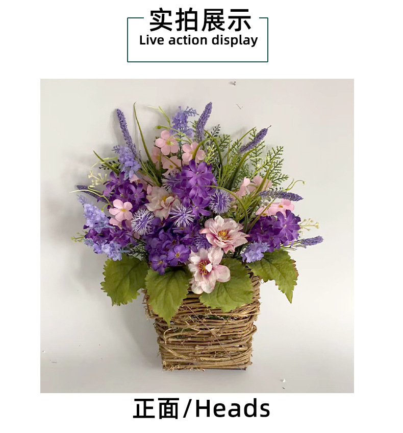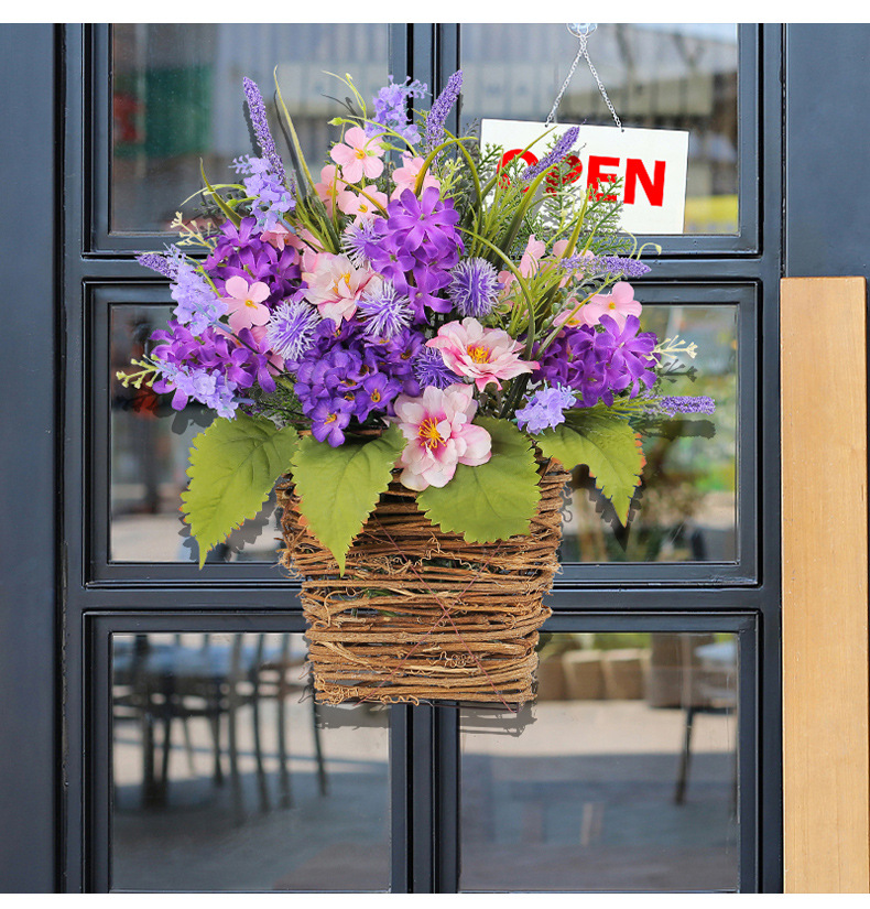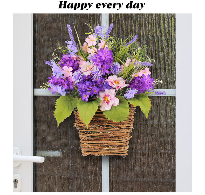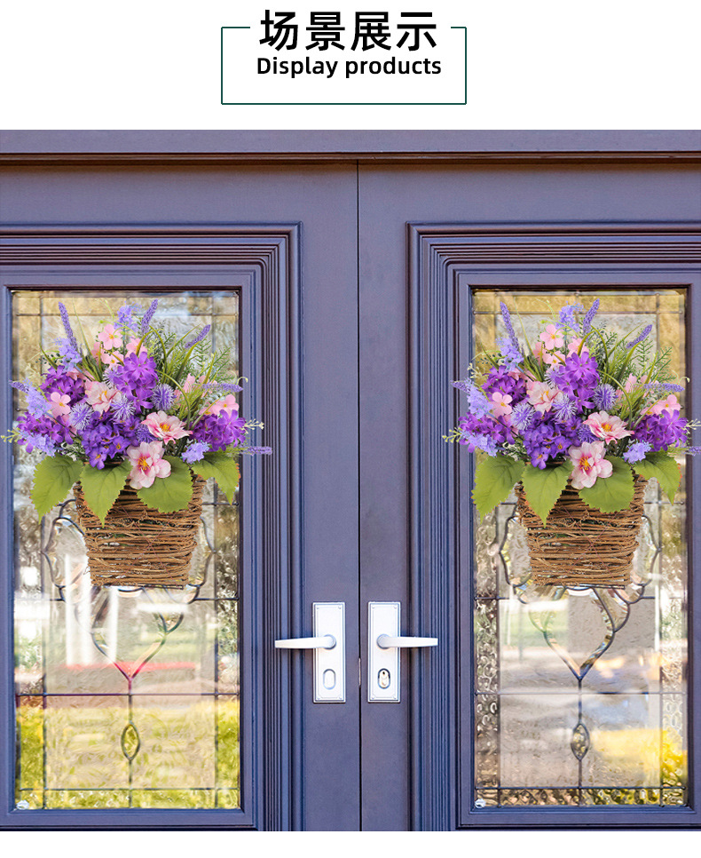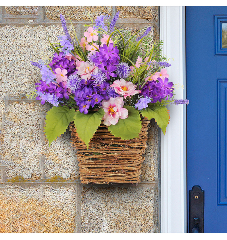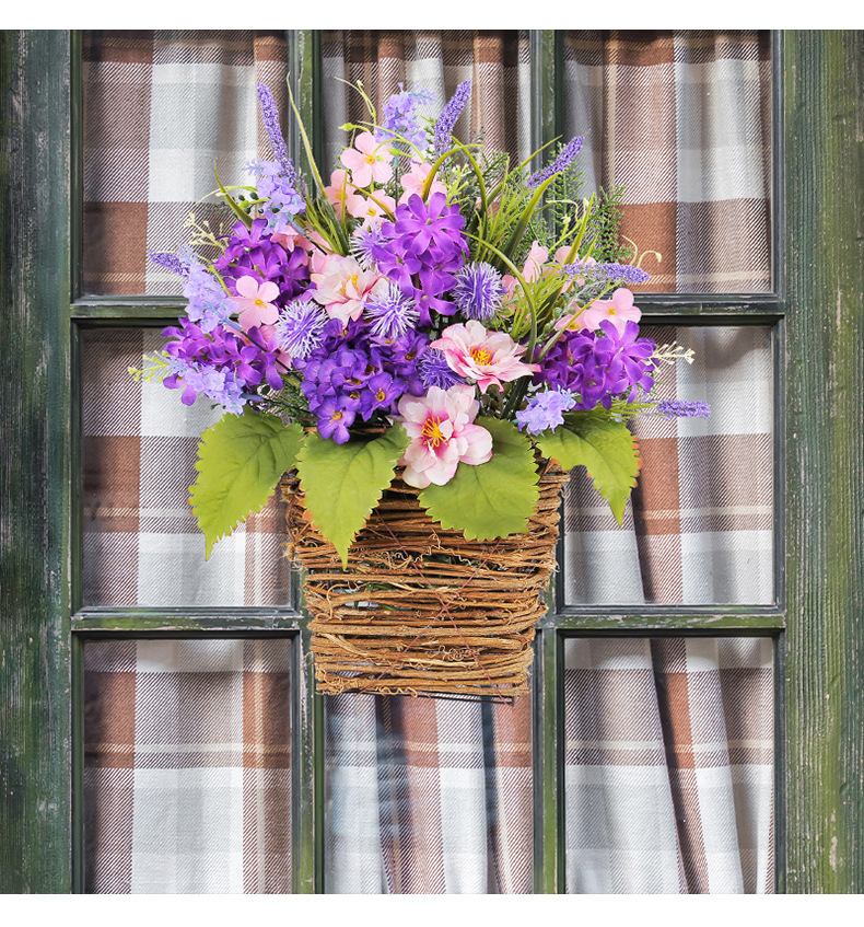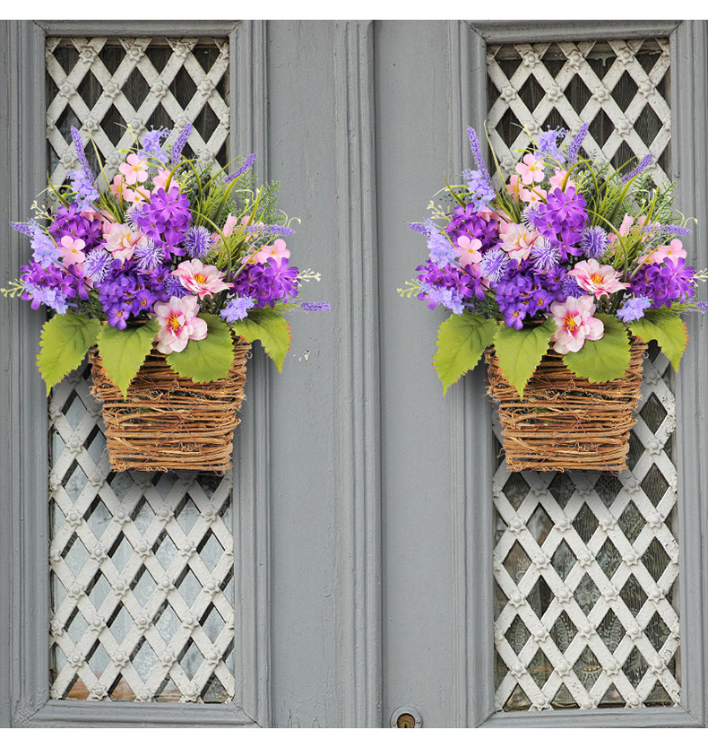 Cesta de Flores Artificiales Moradas Transfronterizas, Decoración para el Día de la Madre 2025, Flores Artificiales de Lavanda Morada para Colgar en la Puerta, Decoración del Hogar
