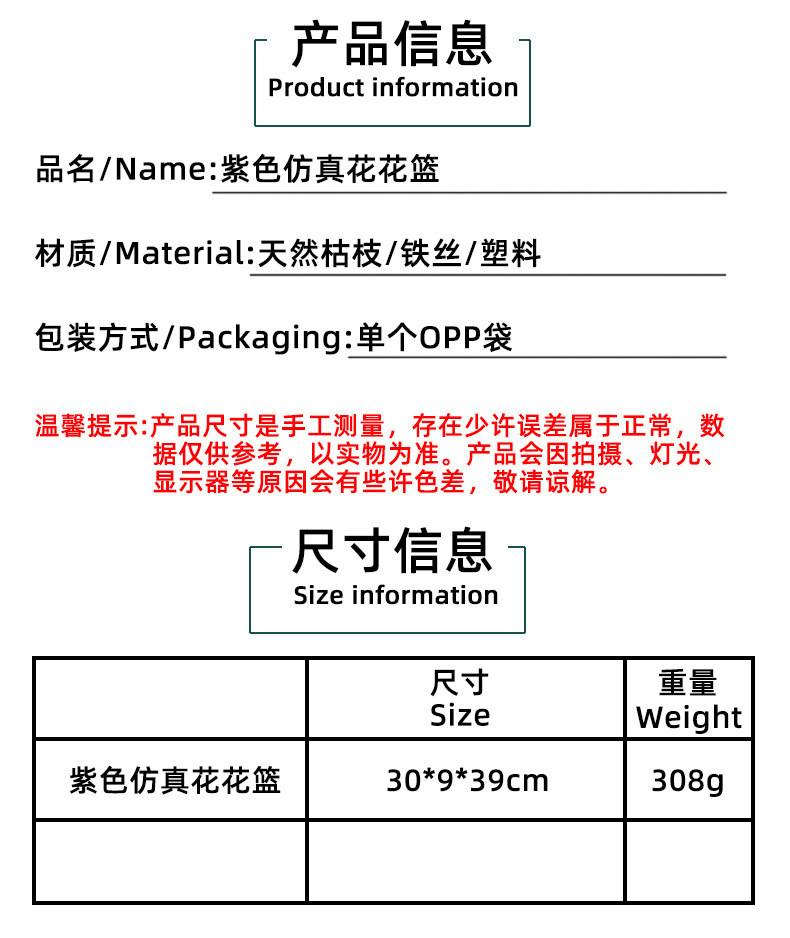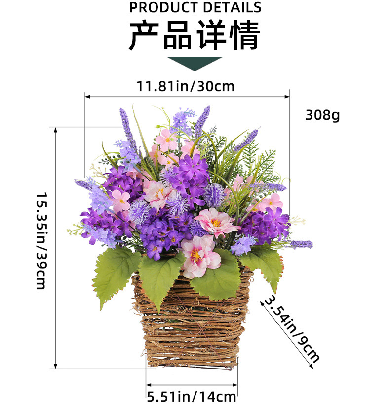| Artículo No. | Cesta de flores artificiales púrpura |