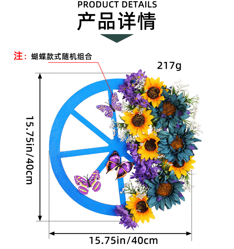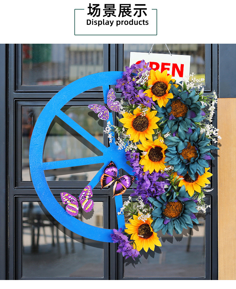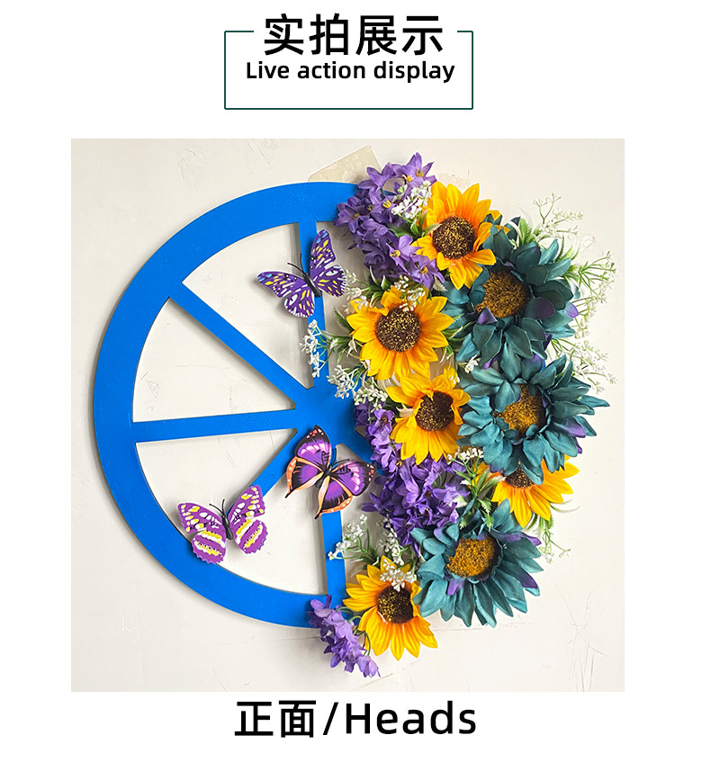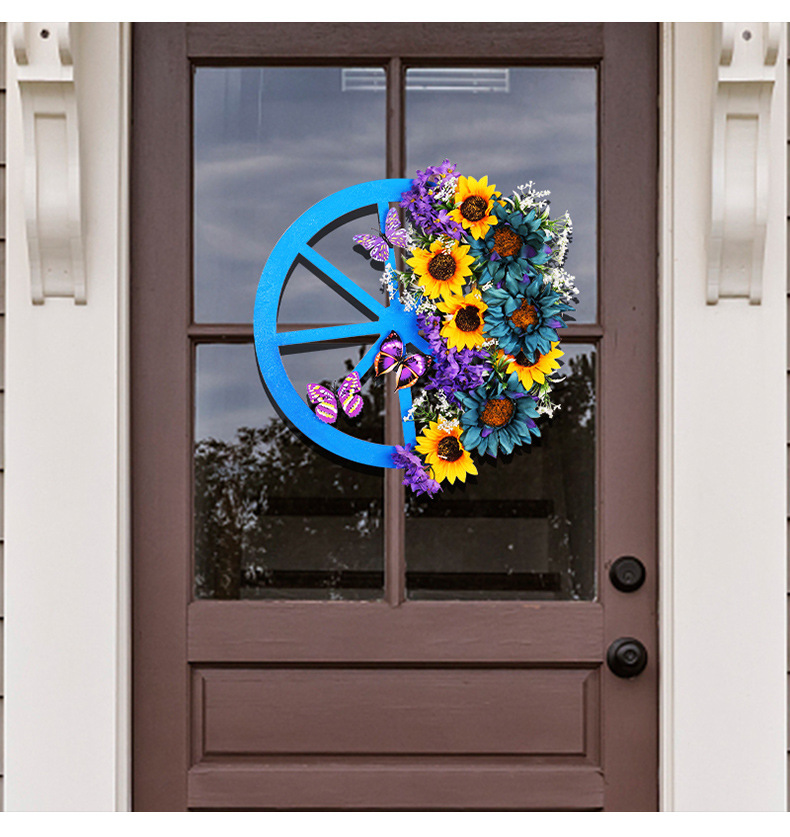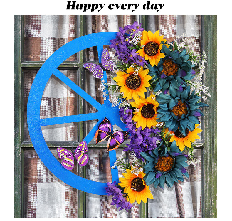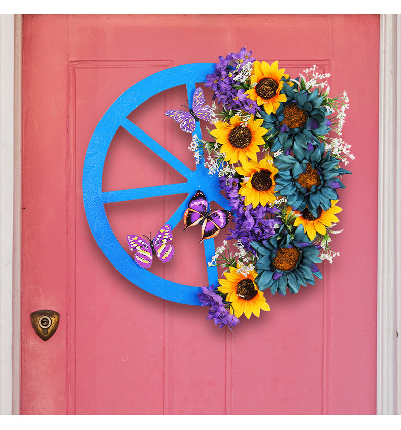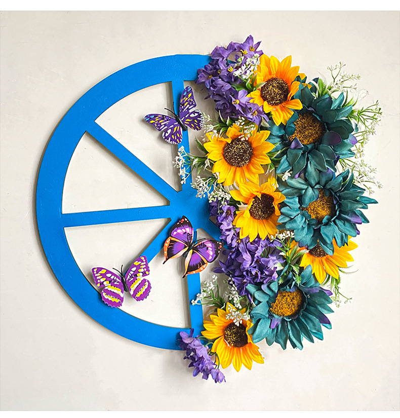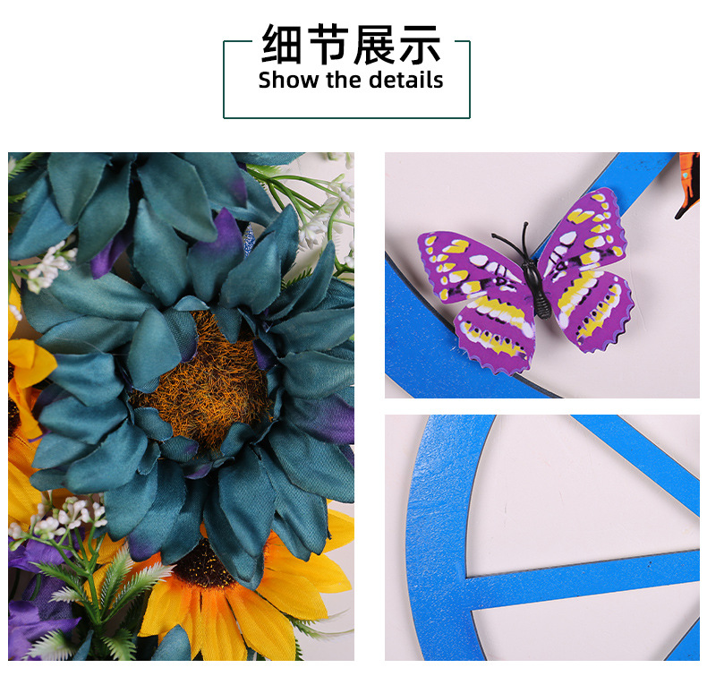 Hong Kong amor azul rueda de girasol guirnalda 2024 primavera creativa flor artificial puerta colgante abeja Festival decoración al por mayor