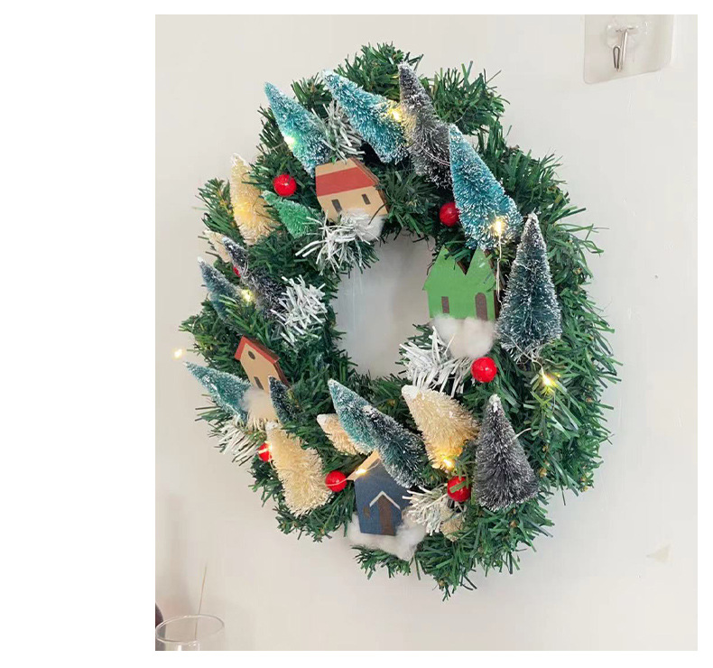 Nuevo árbol de Navidad brillante al por mayor creativo pequeña casa colgante decoración de la corona de Navidad de ventana colgante