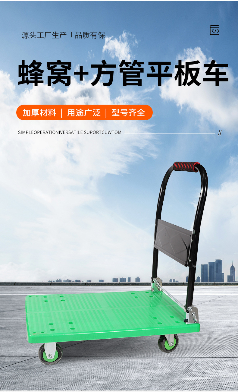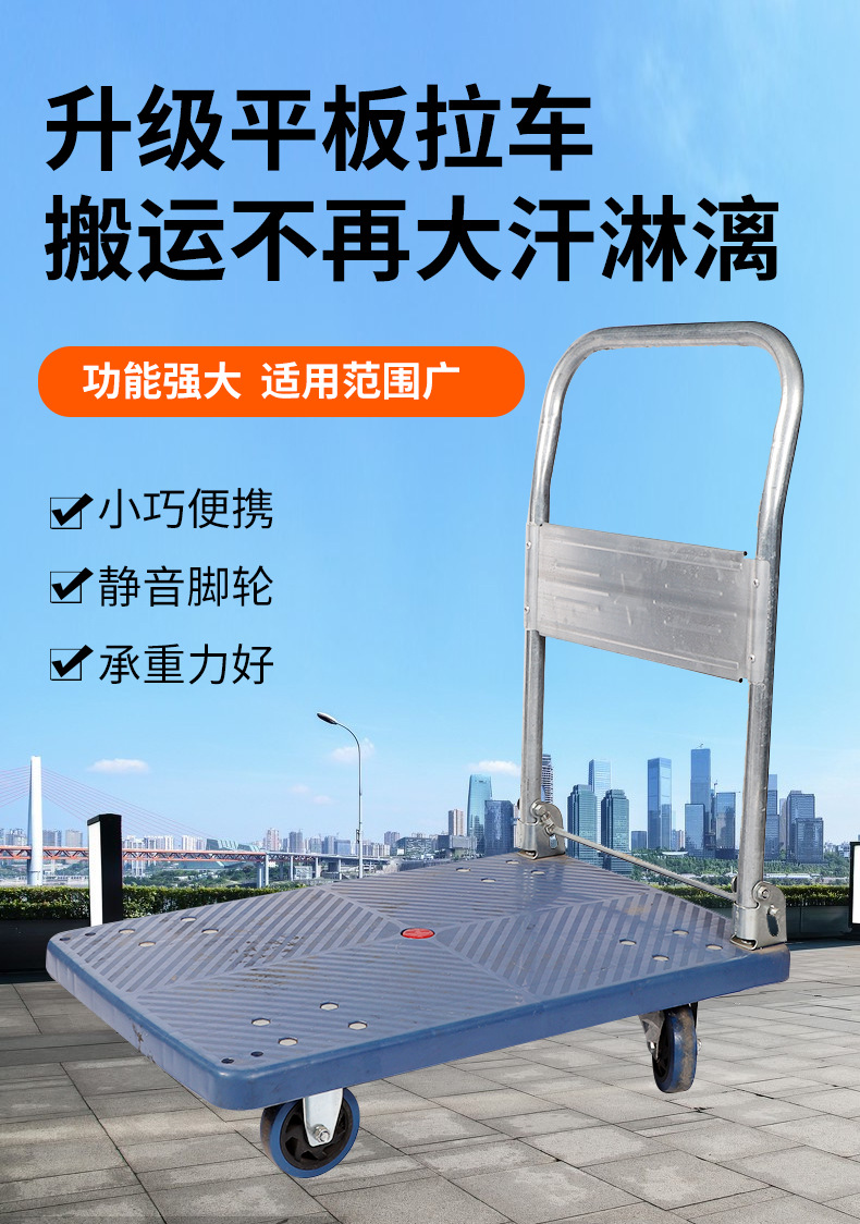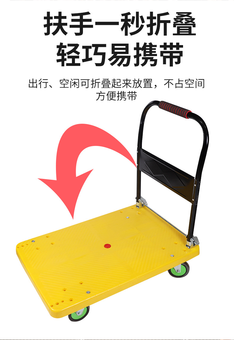 carro silencioso, carro de transporte de placa plana plegable, carro de cuatro ruedas, carro de tirón, carro doméstico portátil