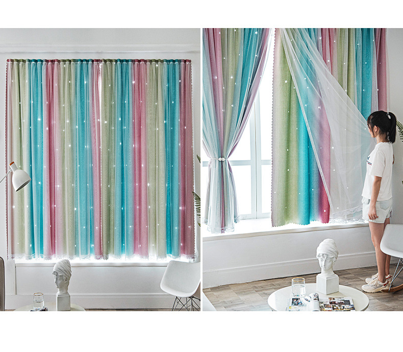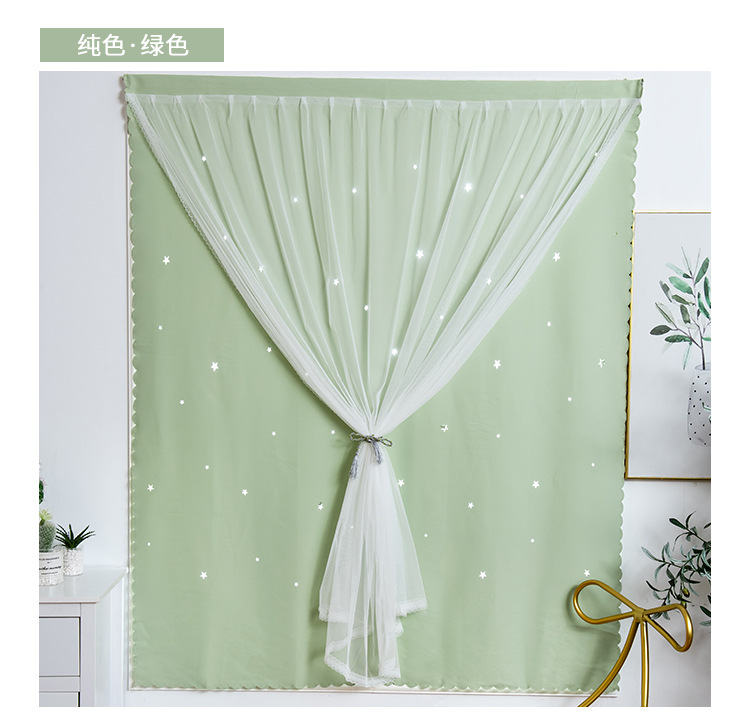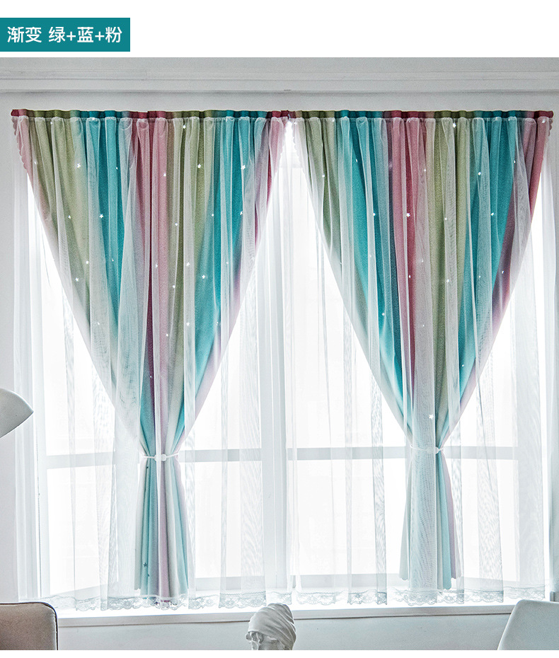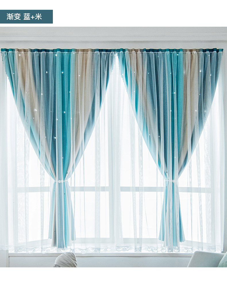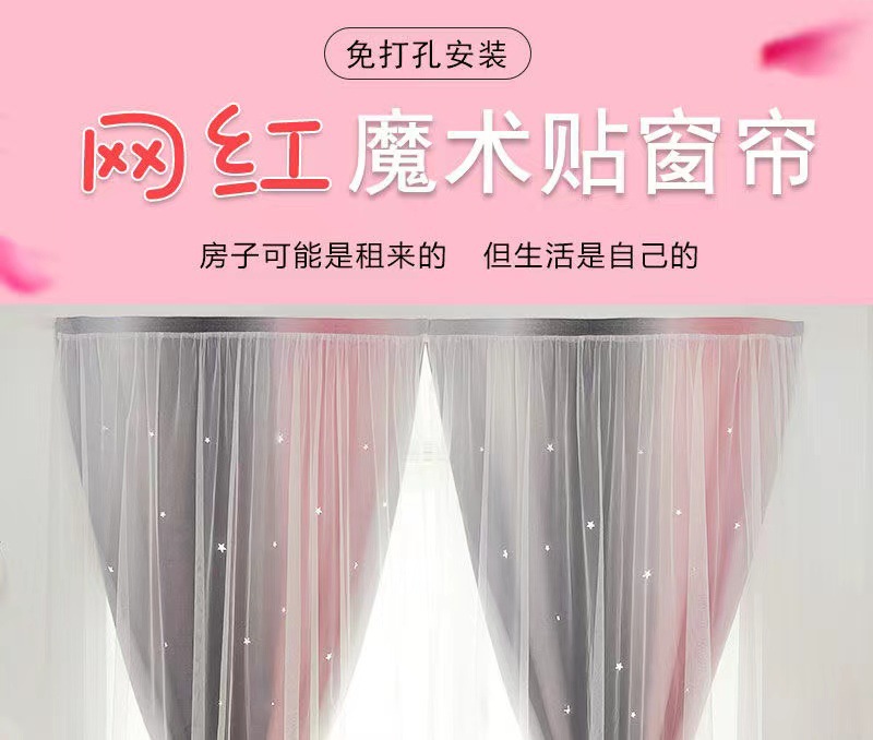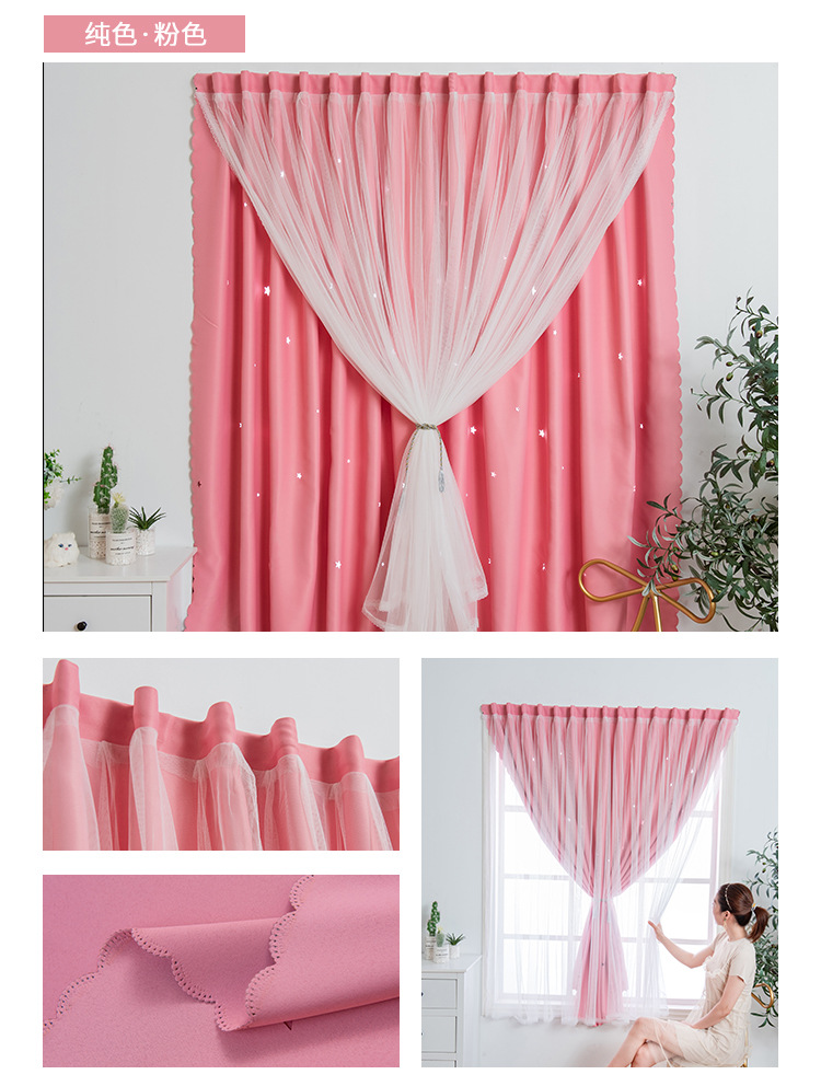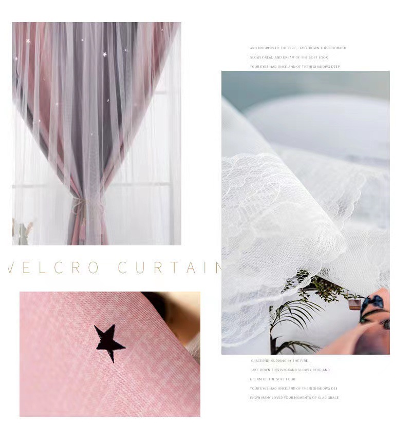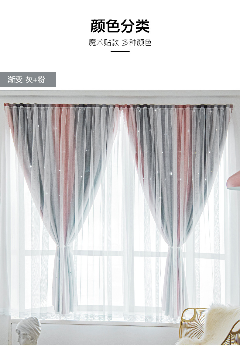 Cortina de Velcro perforación-libre instalación dormitorio sombreado neto rojo hueco estrella gradiente de doble capa integrado producto terminado al por mayor