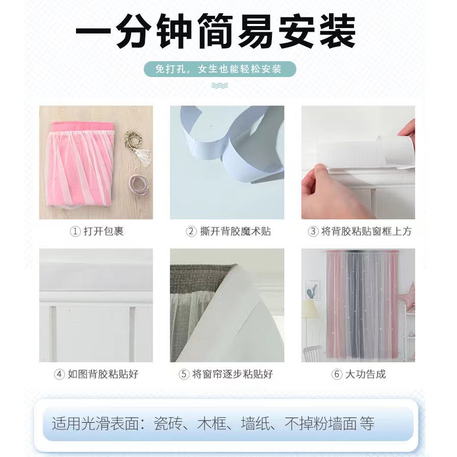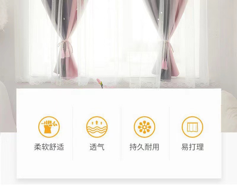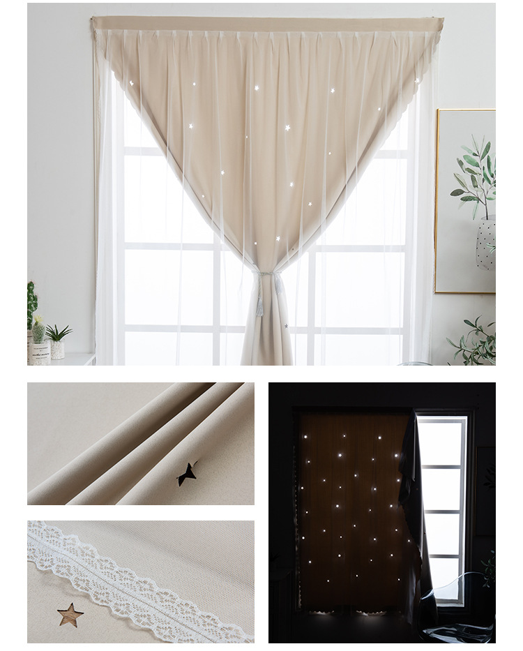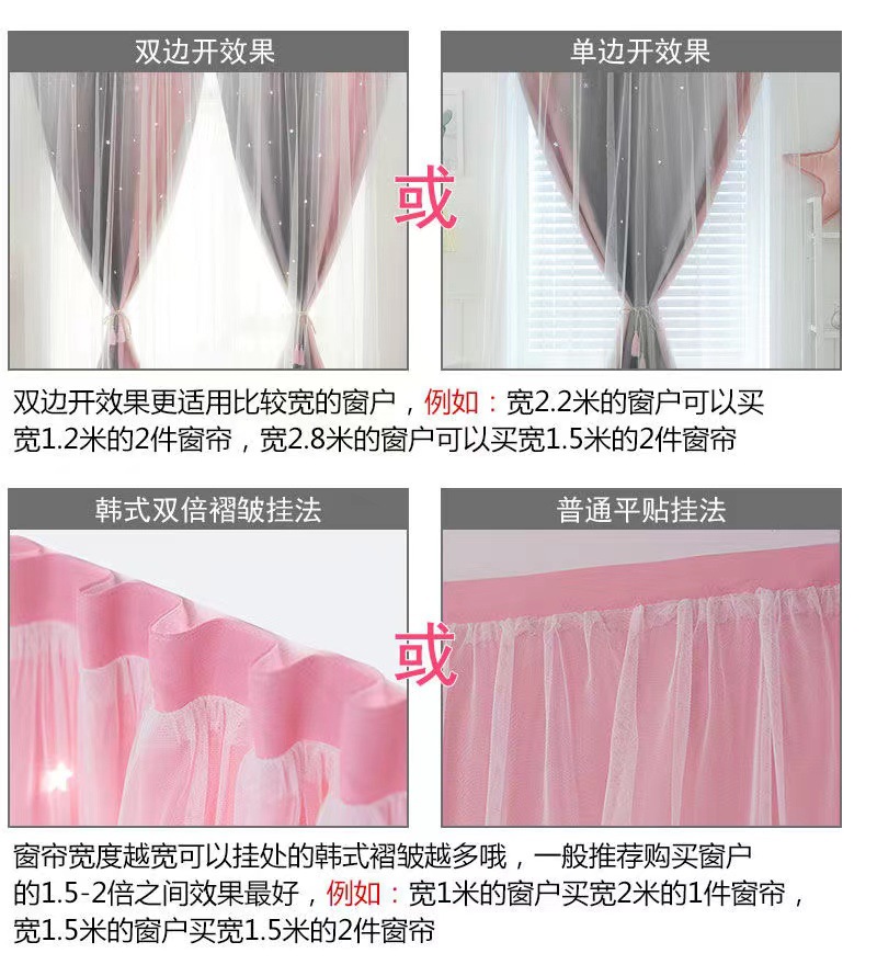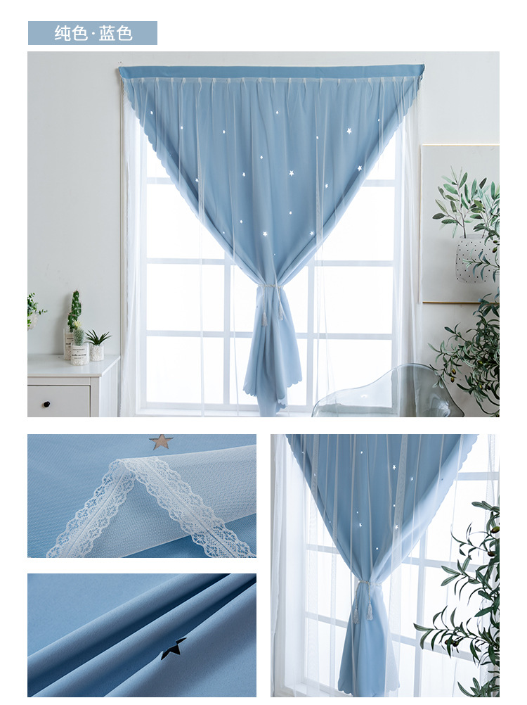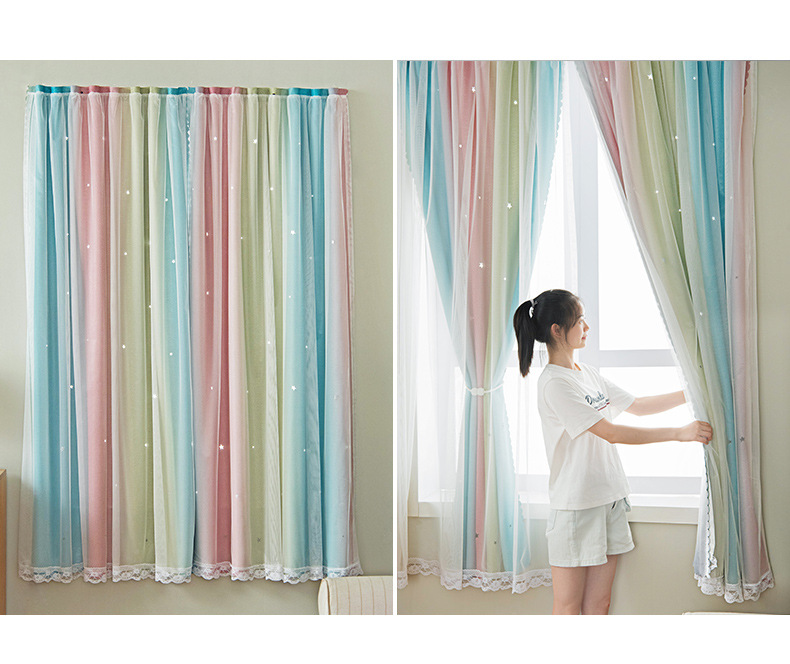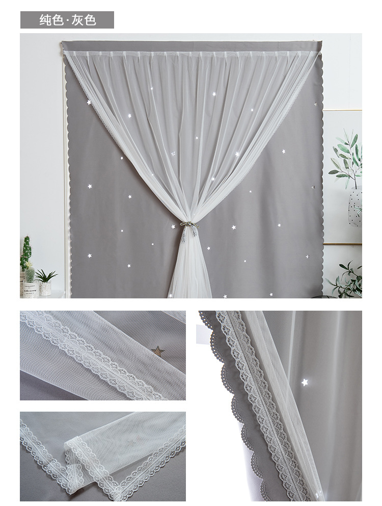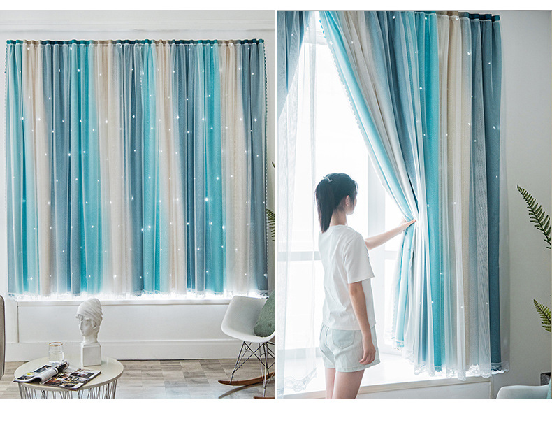 Cortina de Velcro perforación-libre instalación dormitorio sombreado neto rojo hueco estrella gradiente de doble capa integrado producto terminado al por mayor