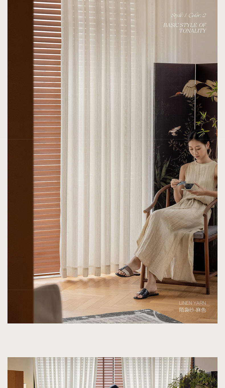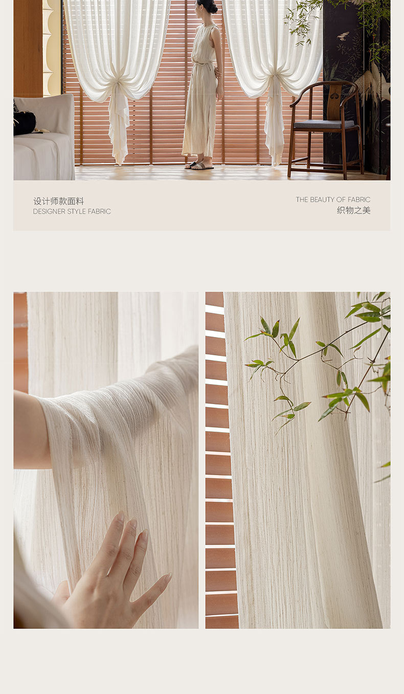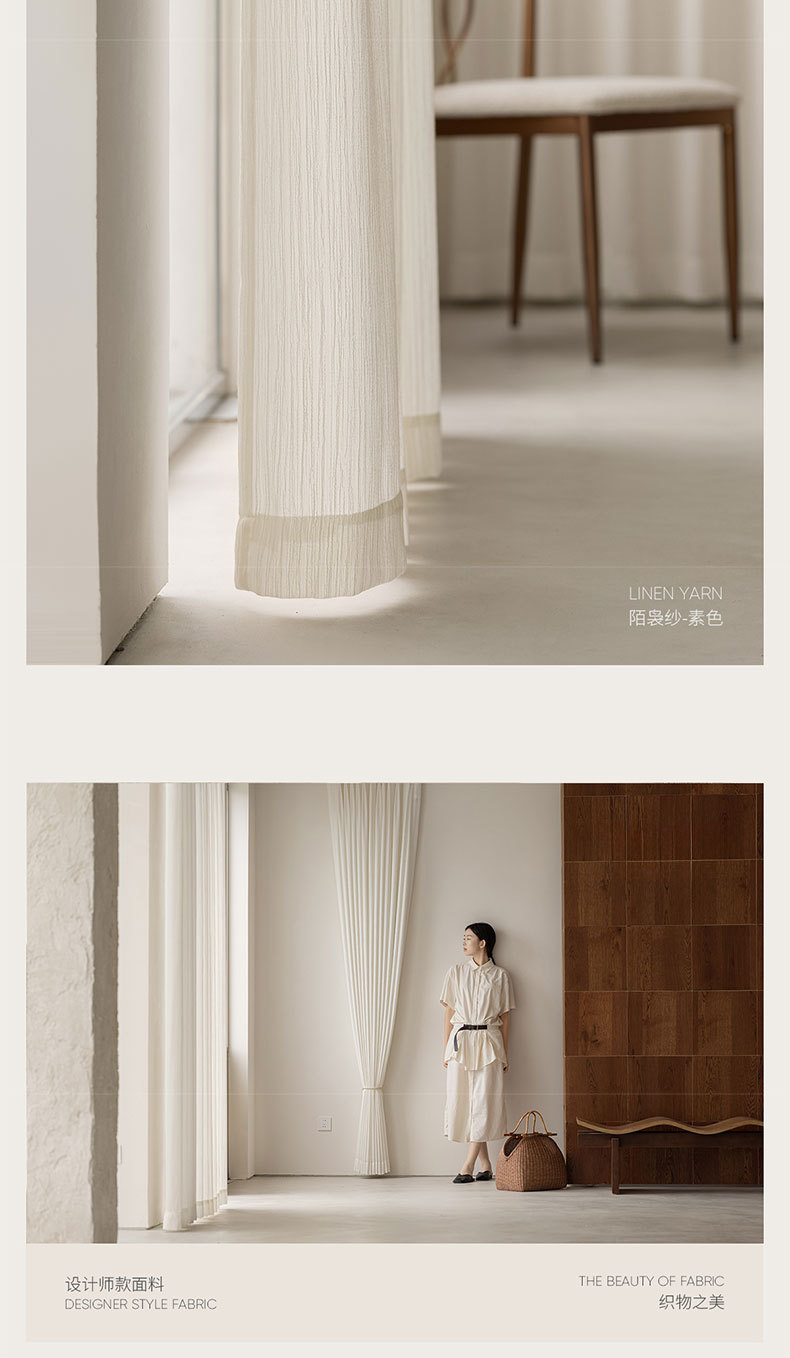 2025 nuevo hilo blanco vertical tela de lino sala de estar balcón ventana flotante cortina Shaoxing Ke Bridge opaco