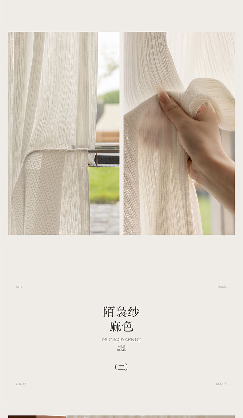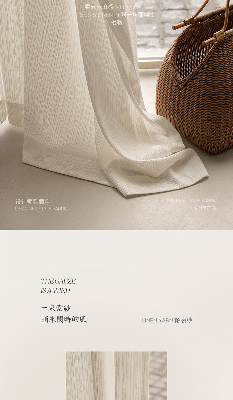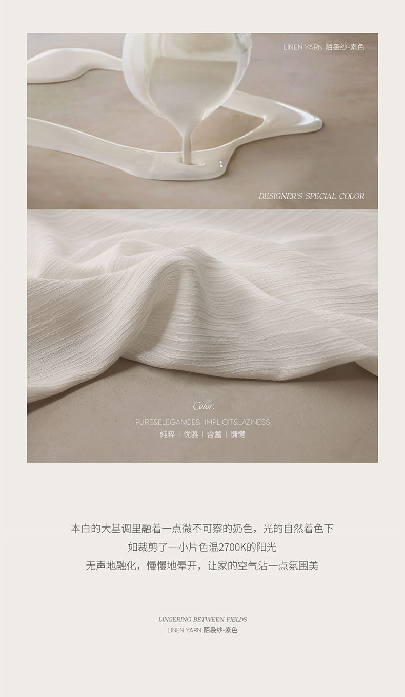 2025 nuevo hilo blanco vertical tela de lino sala de estar balcón ventana flotante cortina Shaoxing Ke Bridge opaco