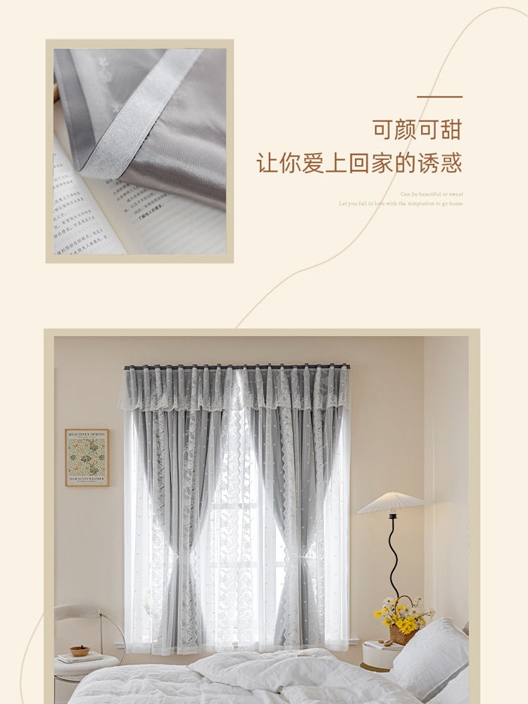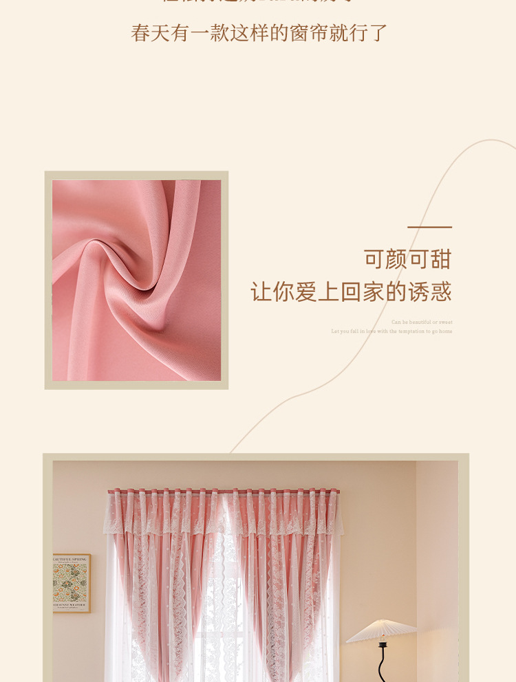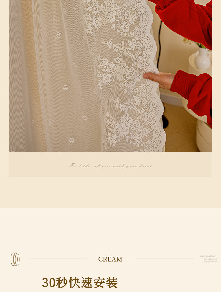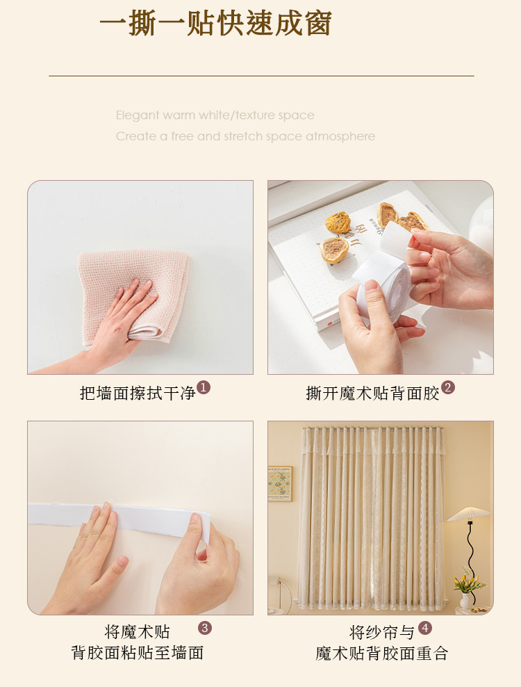 Cortina de color crema japonesa Instalación de Velcro sin agujeros Dormitorio Balcón Cortina autoadhesiva de alto sombreado Entrega de una pieza
