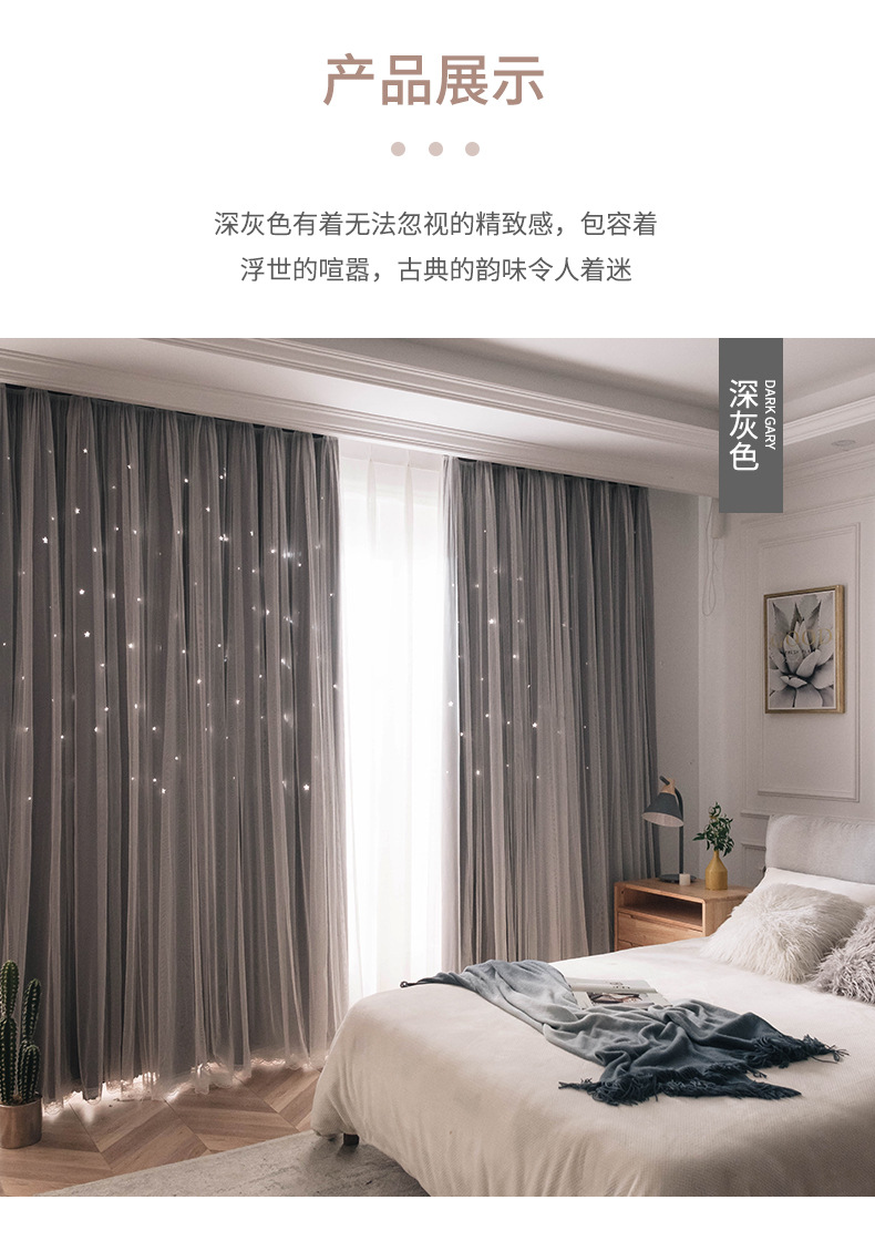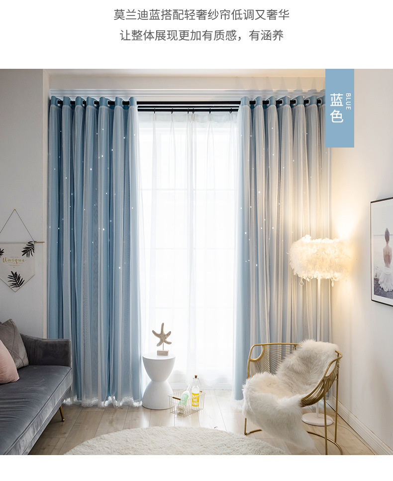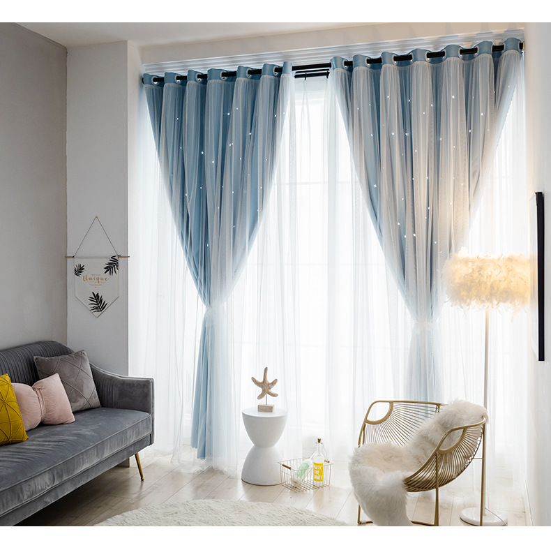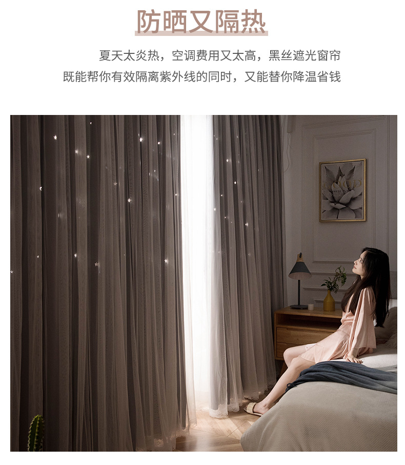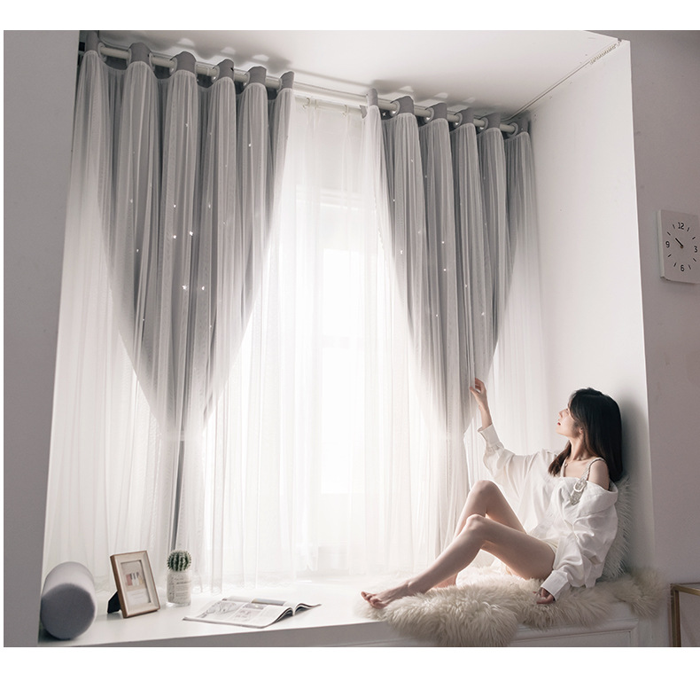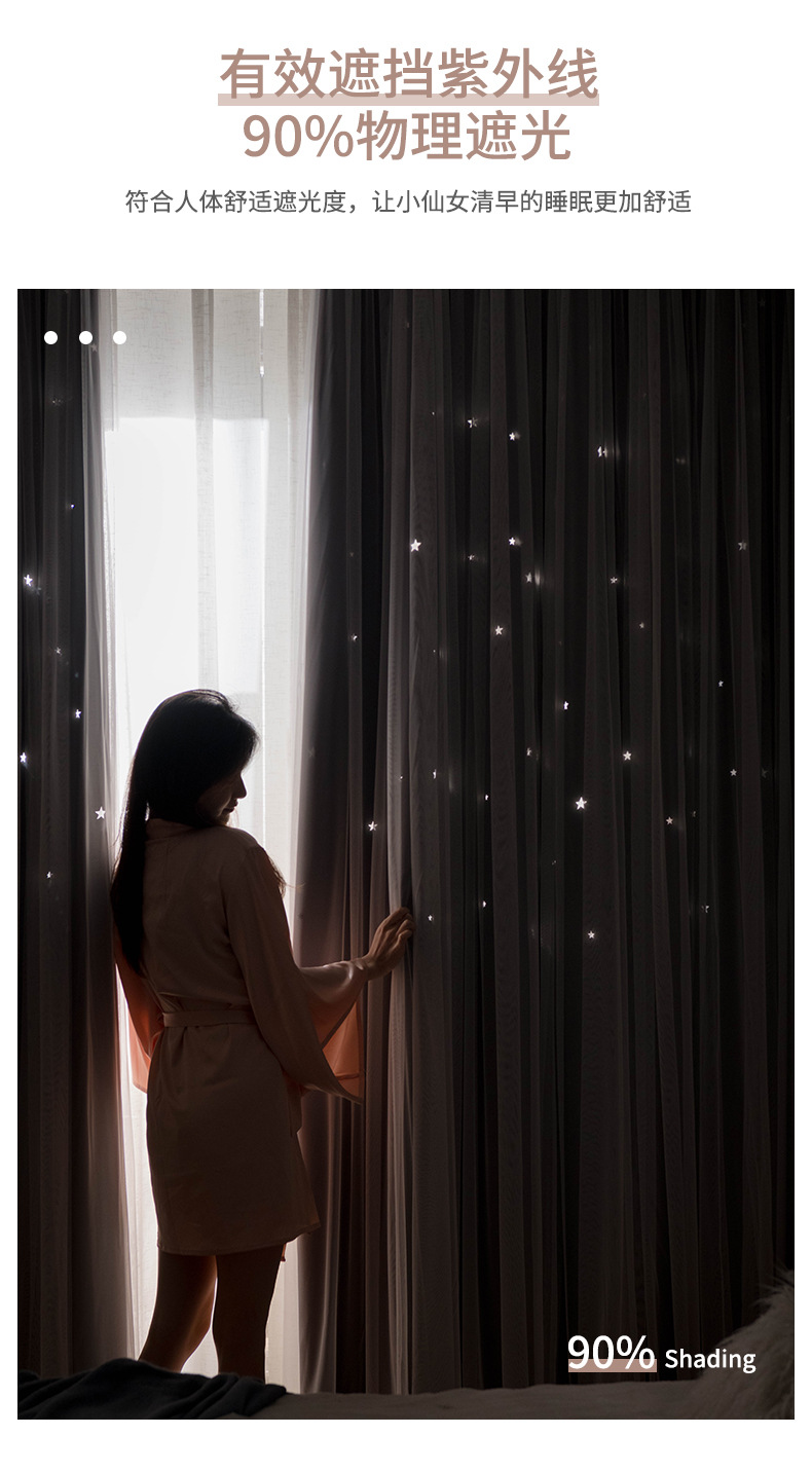 Internet celebridad cortina de sombreado hueco estrella dormitorio Punch-libre ins doble capa de luz de lujo ventana de la Bahía de cielo estrellado paño producto terminado al por mayor