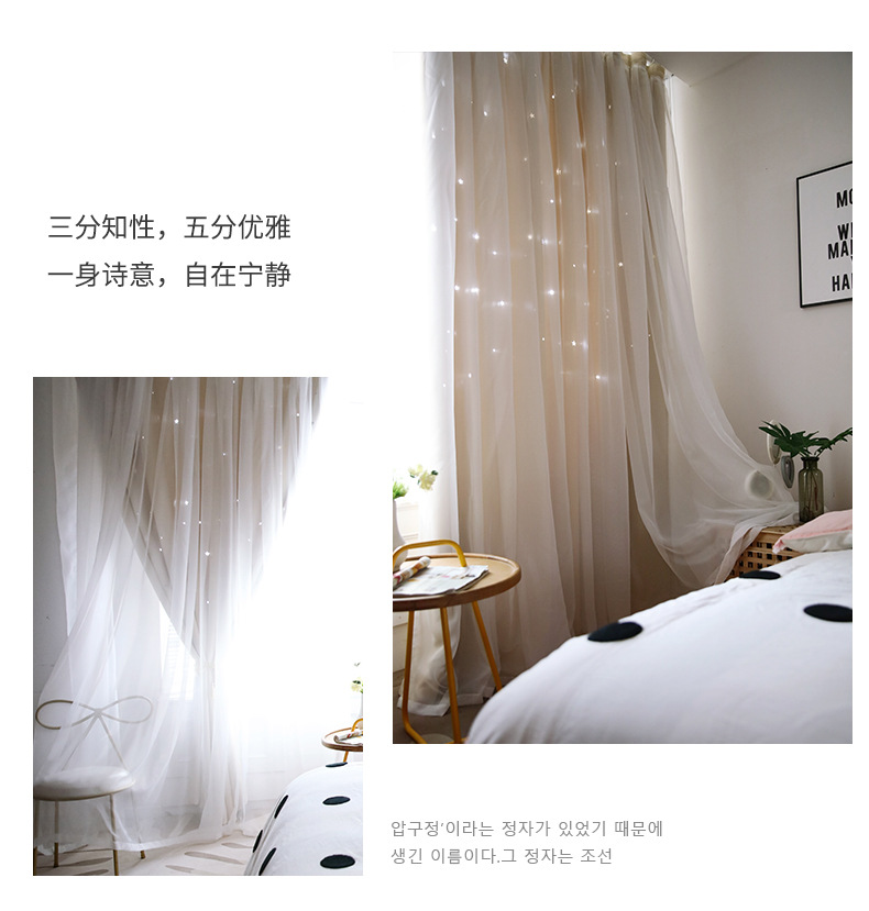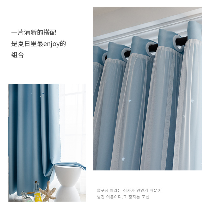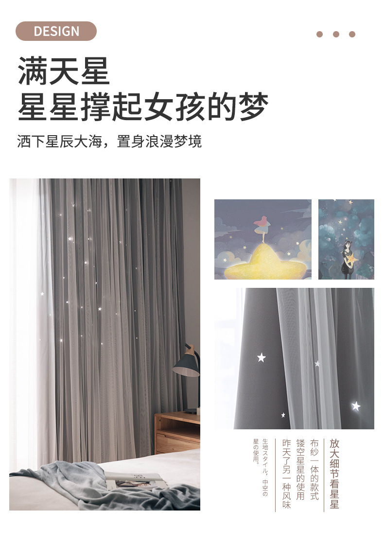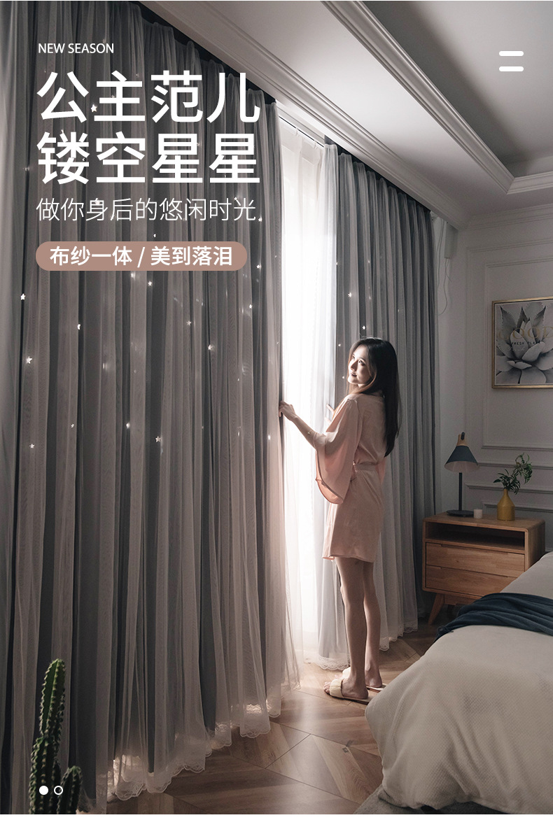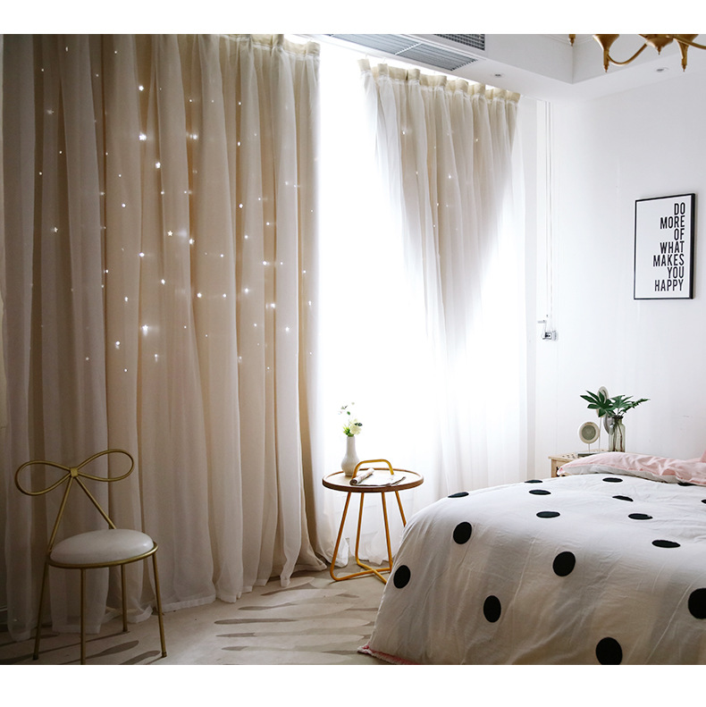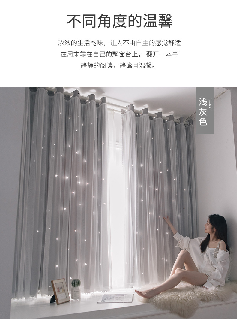Internet celebridad cortina de sombreado hueco estrella dormitorio Punch-libre ins doble capa de luz de lujo ventana de la Bahía de cielo estrellado paño producto terminado al por mayor