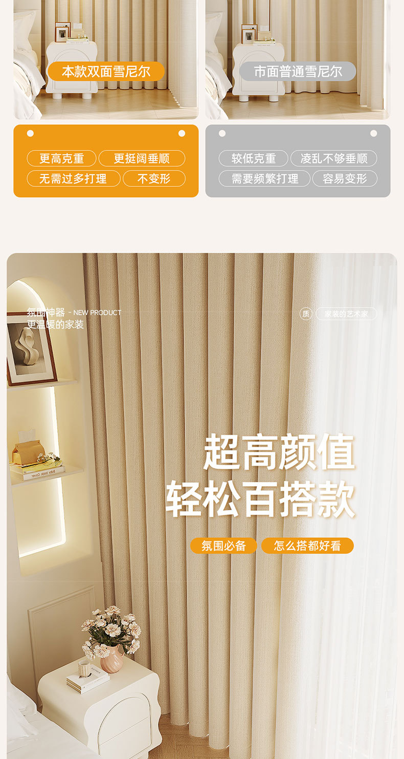 Cortinas de chenilla de doble cara gruesas de Shaoxing Keqiao, totalmente opacas, hechas a medida de alta gama para dormitorios, cortinas que aislan el calor y bloquean el sol.