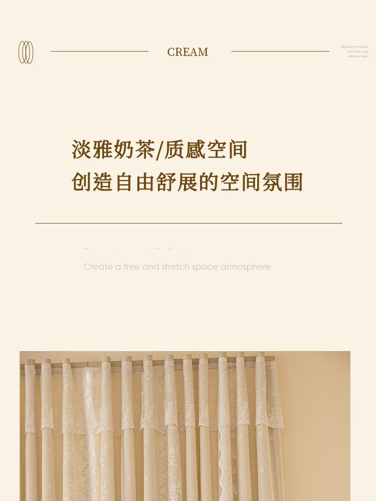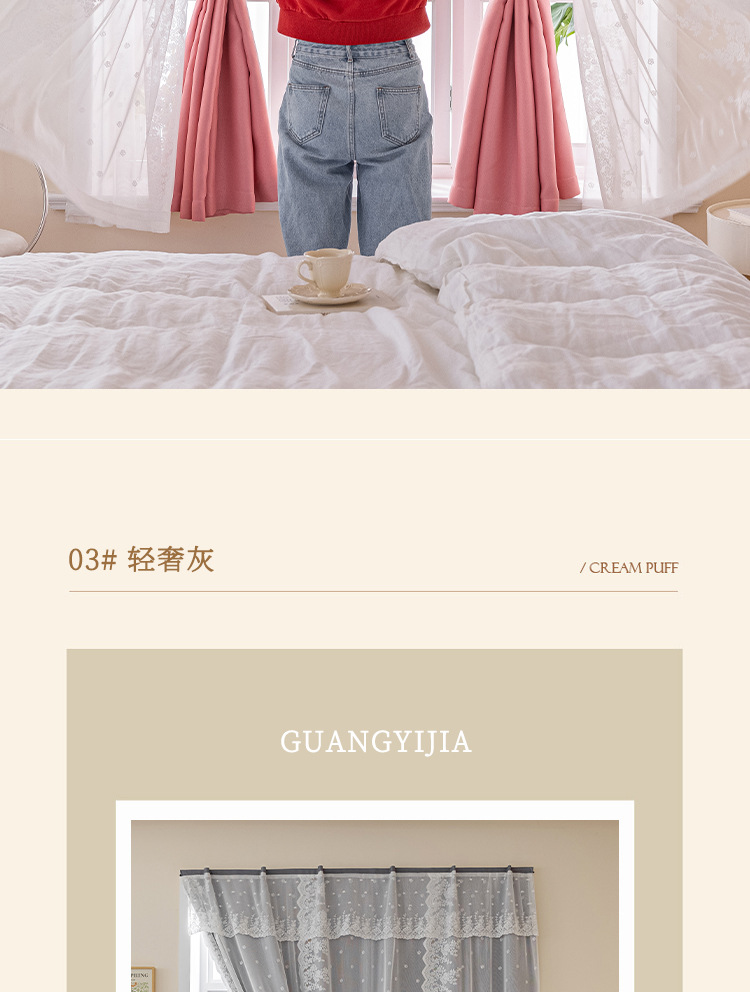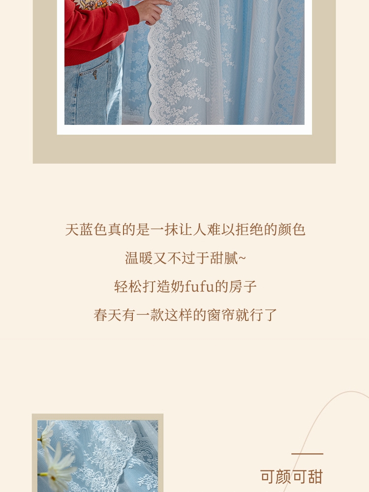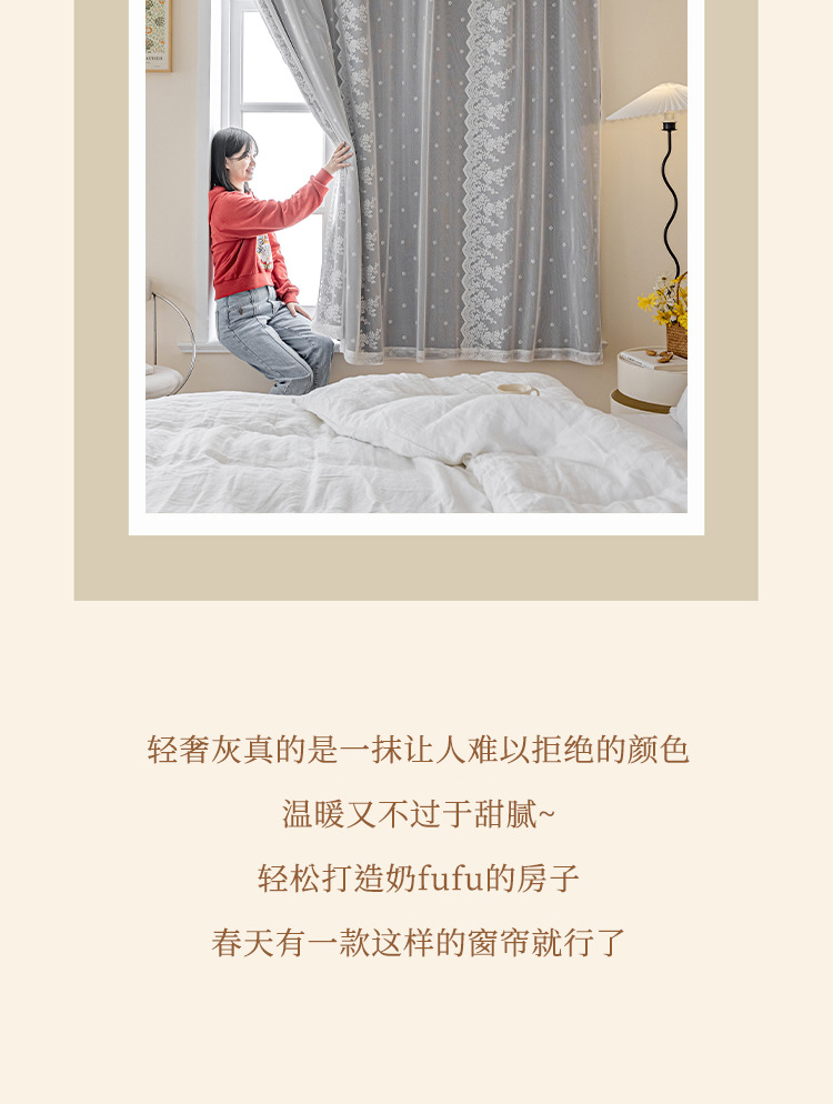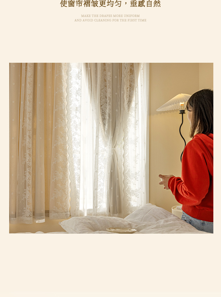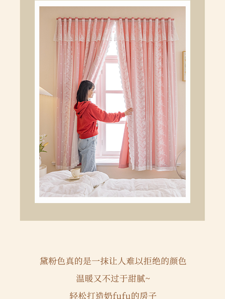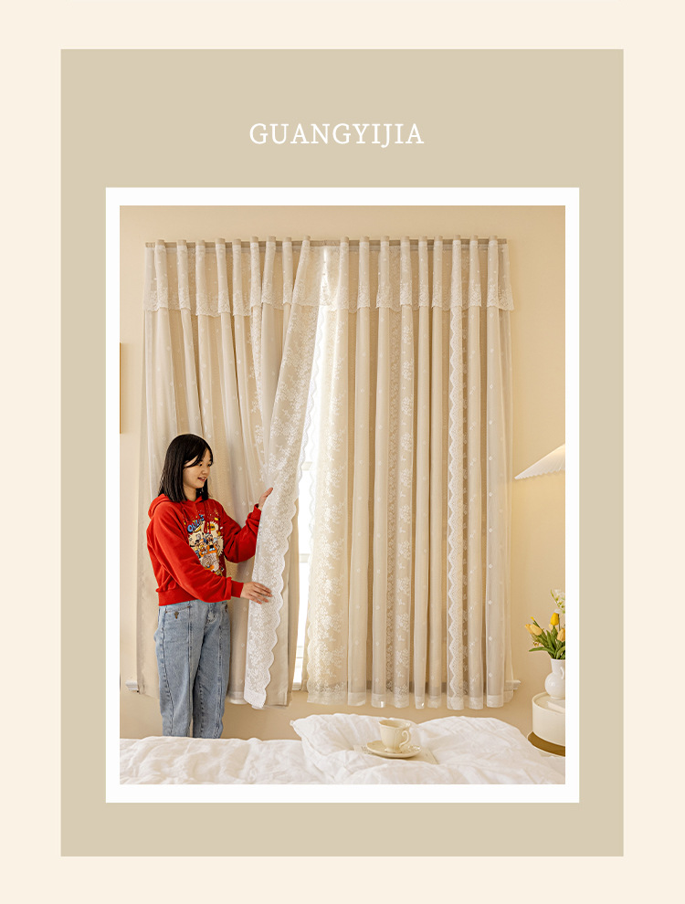 Cortina de velcro de encaje francés instalación sin perforaciones Internet celebridad dormitorio cortina de sombreado autoadhesiva entrega de una pieza