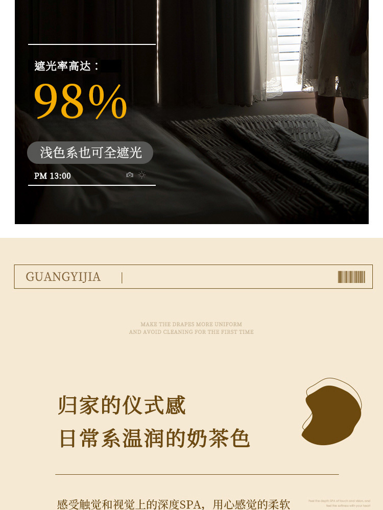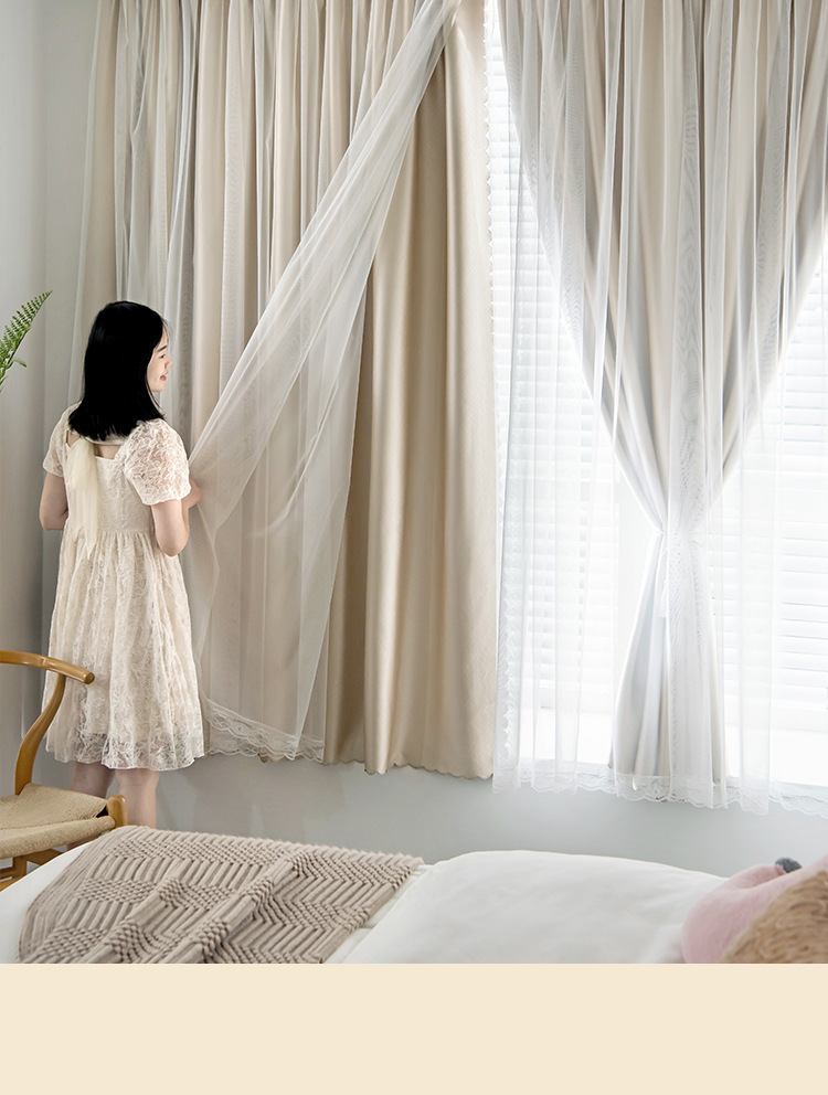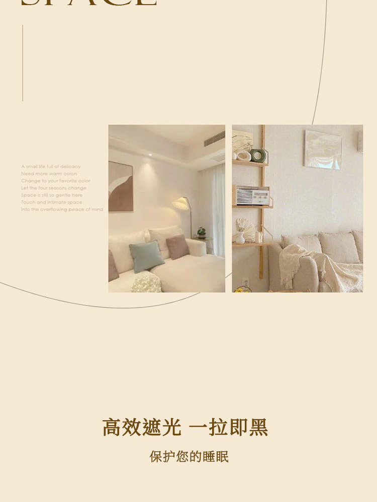 Cortina de color crema japonesa sombreado completo Instalación sin punzones de Velcro cortina de aislamiento insonorizada al por mayor entrega de una pieza