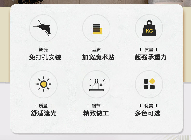 Fábrica directa doble cortina velcro dormitorio sombreado sin perforación instalación cortina autoadhesiva productos terminados relámpago personalizado