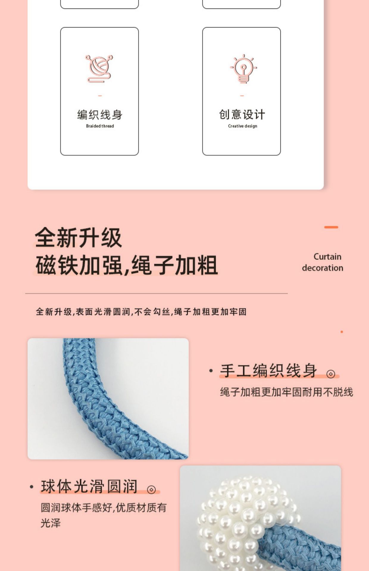 Un par de correas de cortina, hebilla de cortina, hebilla de anillo, cordón de almacenamiento de cortina, cordón sin perforaciones de perlas magnéticas