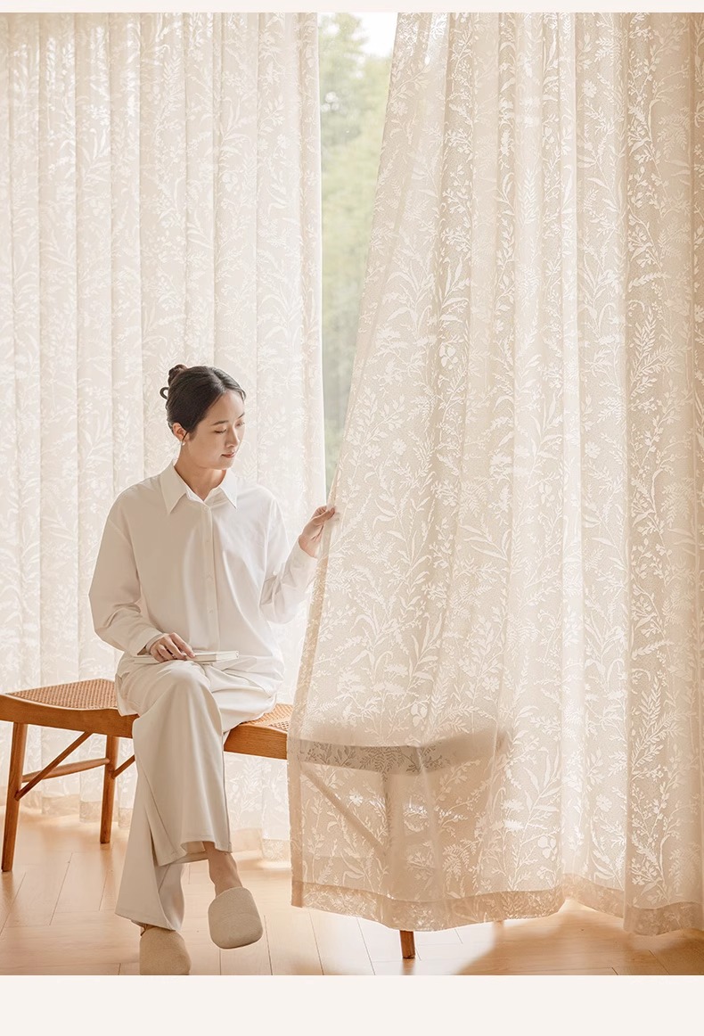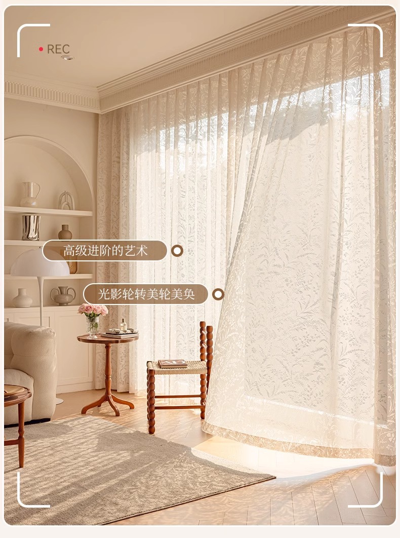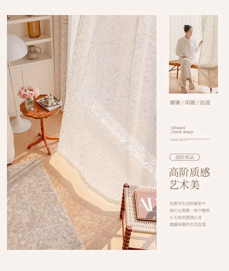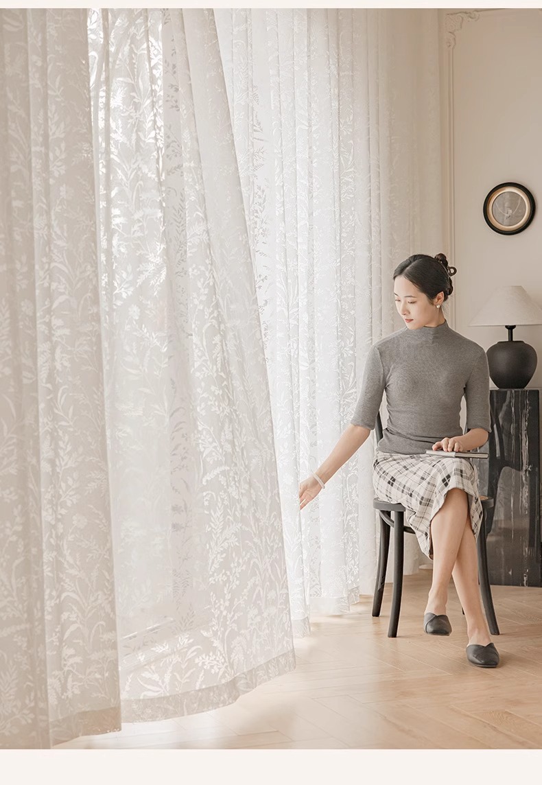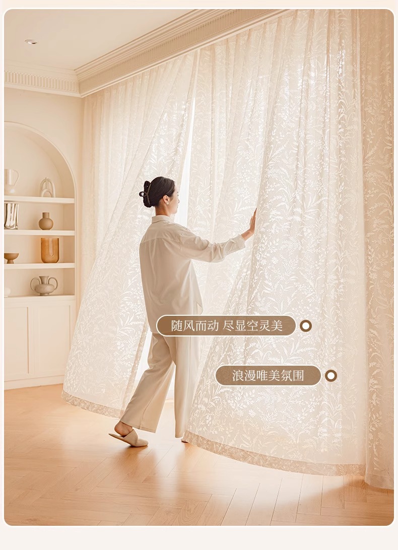 Cortina de gasa de sombra de rama de luna, cortina francesa, sombreado 2025, nuevo estilo, translúcido, transparente, mosquitero, balcón, dormitorio, encaje, tul