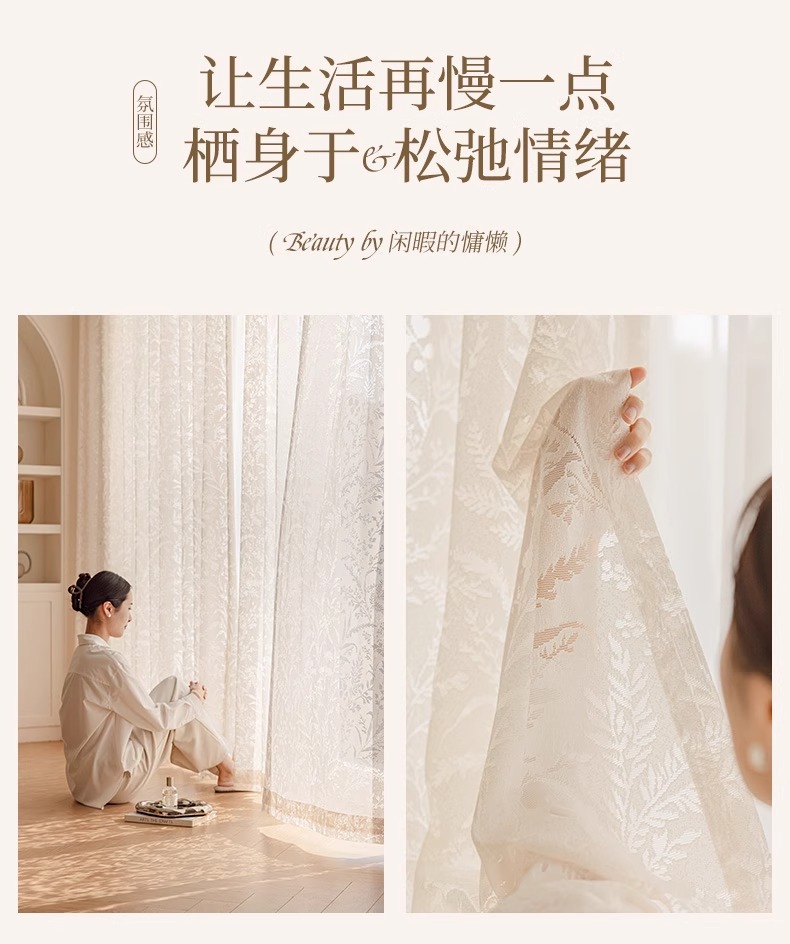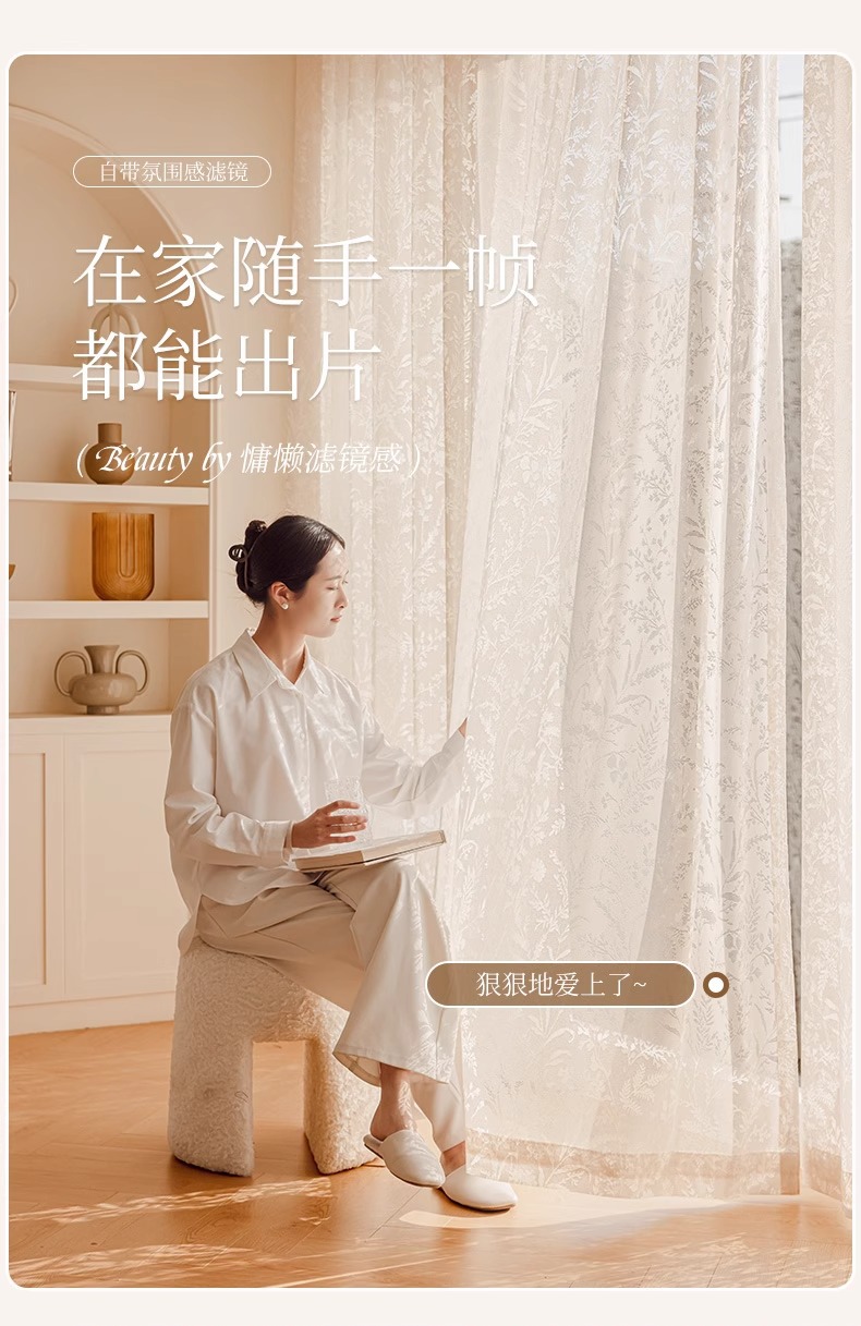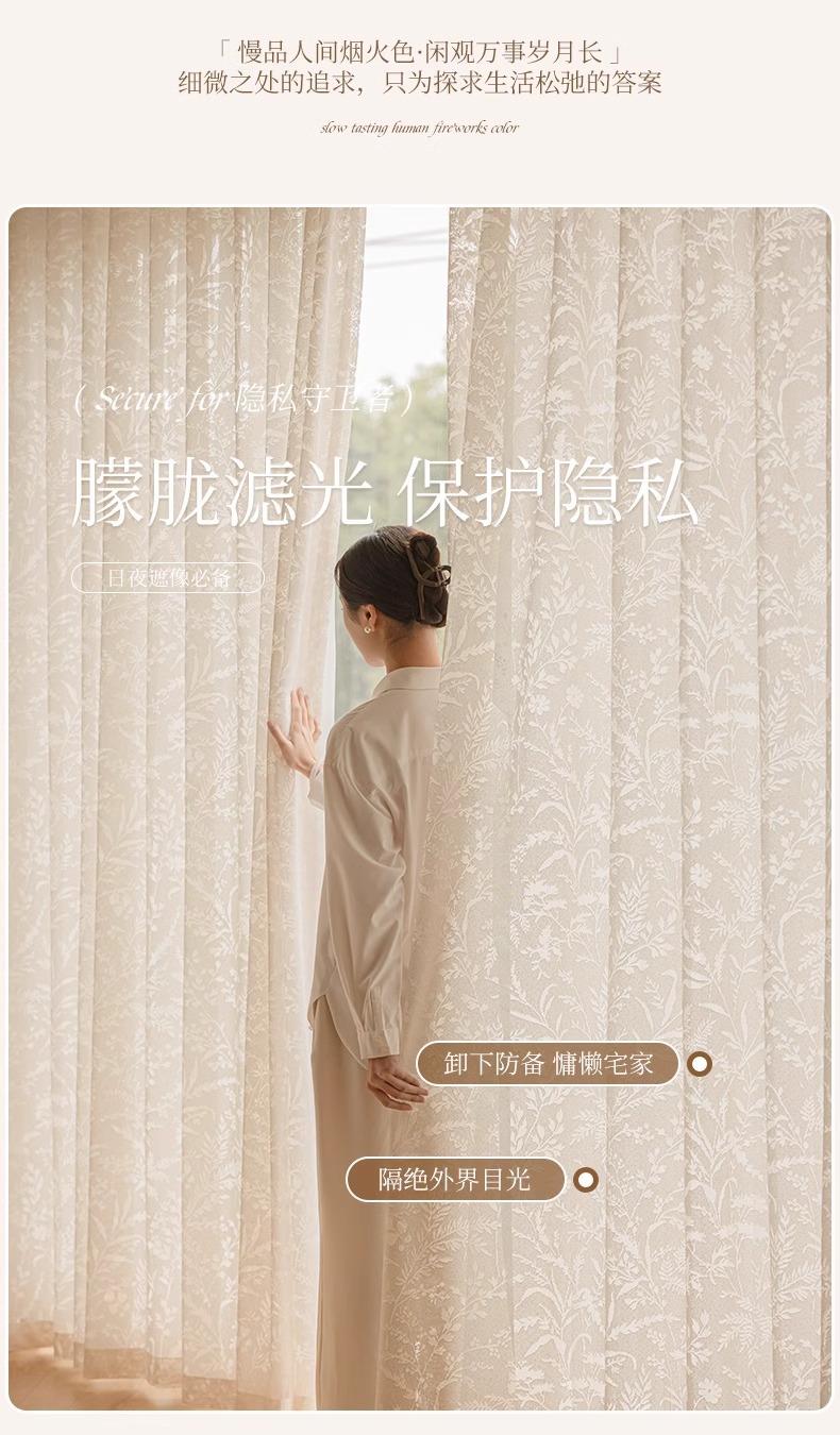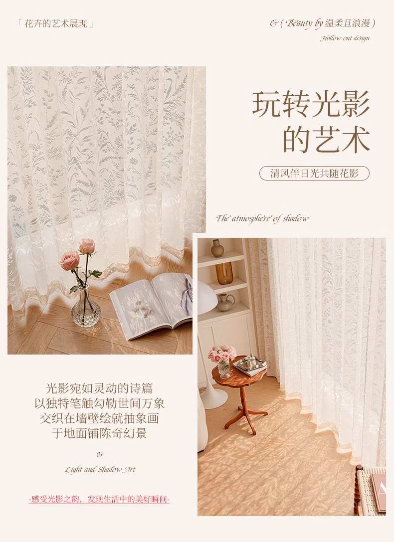 Cortina de gasa de sombra de rama de luna, cortina francesa, sombreado 2025, nuevo estilo, translúcido, transparente, mosquitero, balcón, dormitorio, encaje, tul
