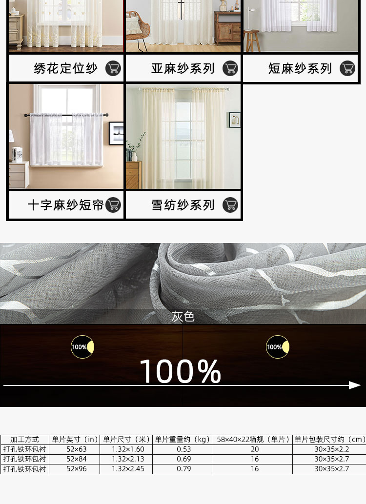 Amazon transfronterizo ventanas acabadas cortinas de plata transparente impermeable barra de acoplamiento fábrica de cortinas de comercio exterior