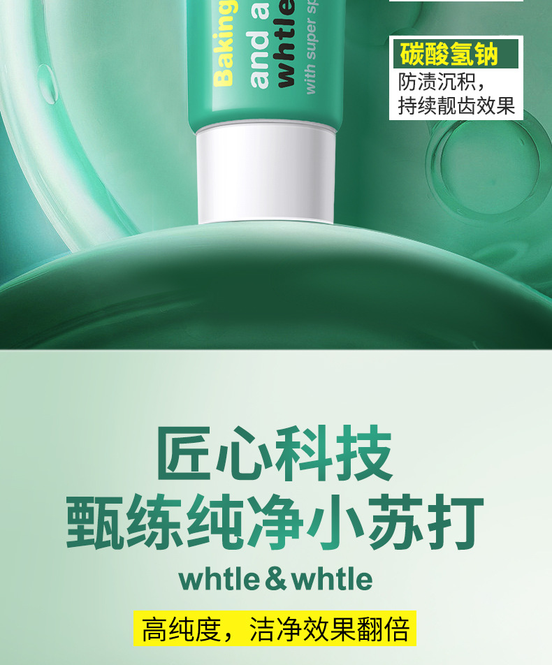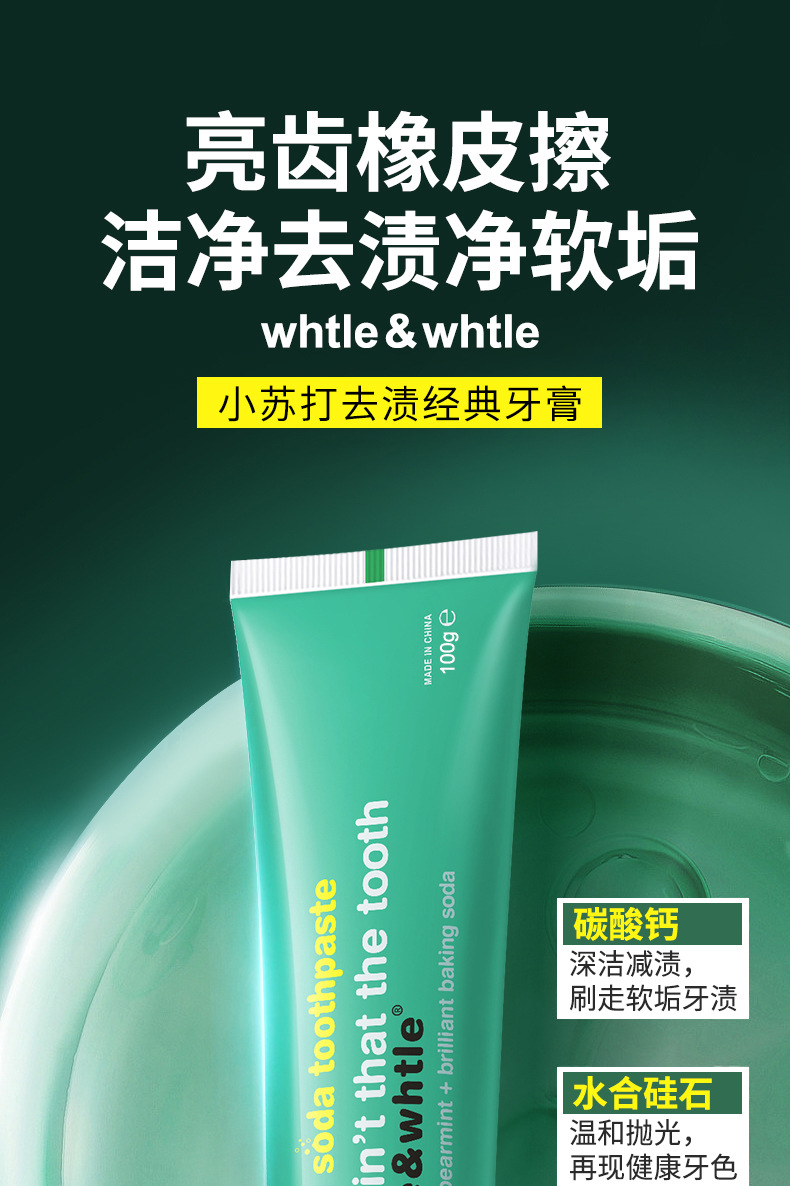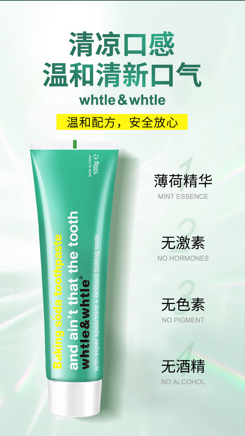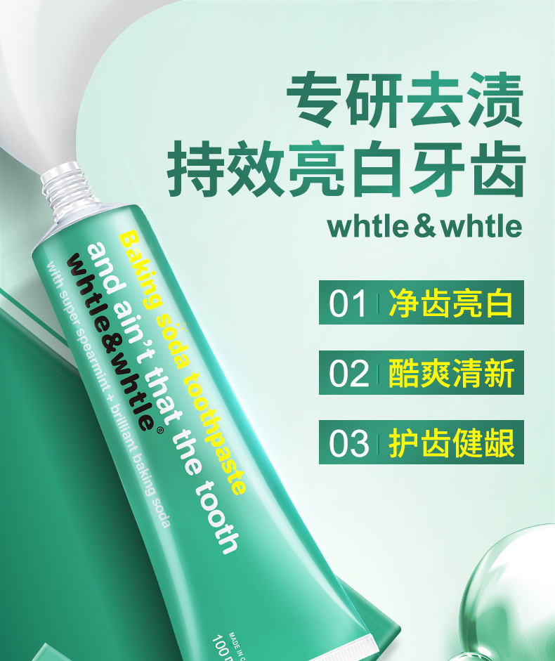 Whtle & whtle pasta de dientes con bicarbonato de soda, menta, aliento fresco, manchas, dientes brillantes, fabricantes genuinos al por mayor 100g