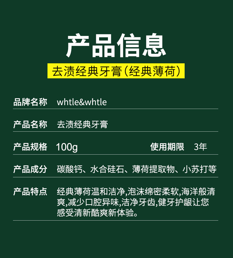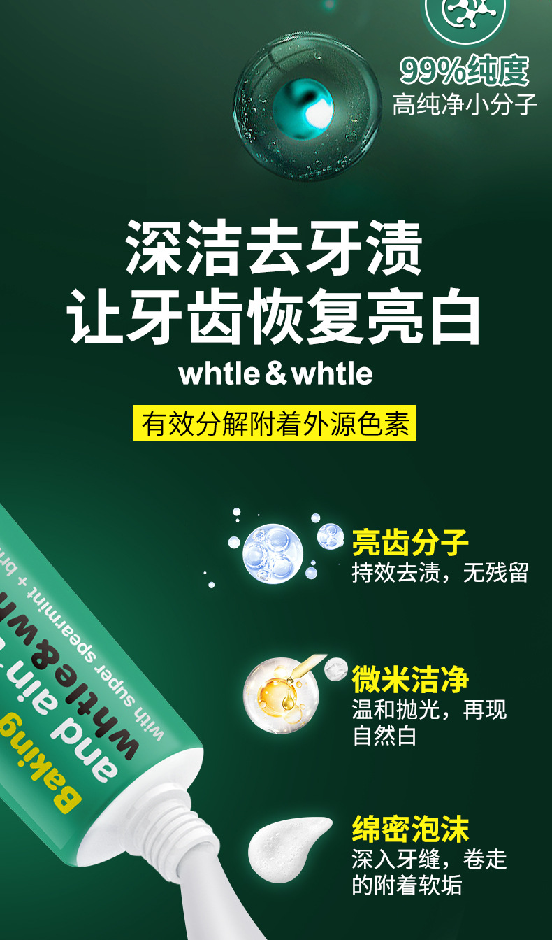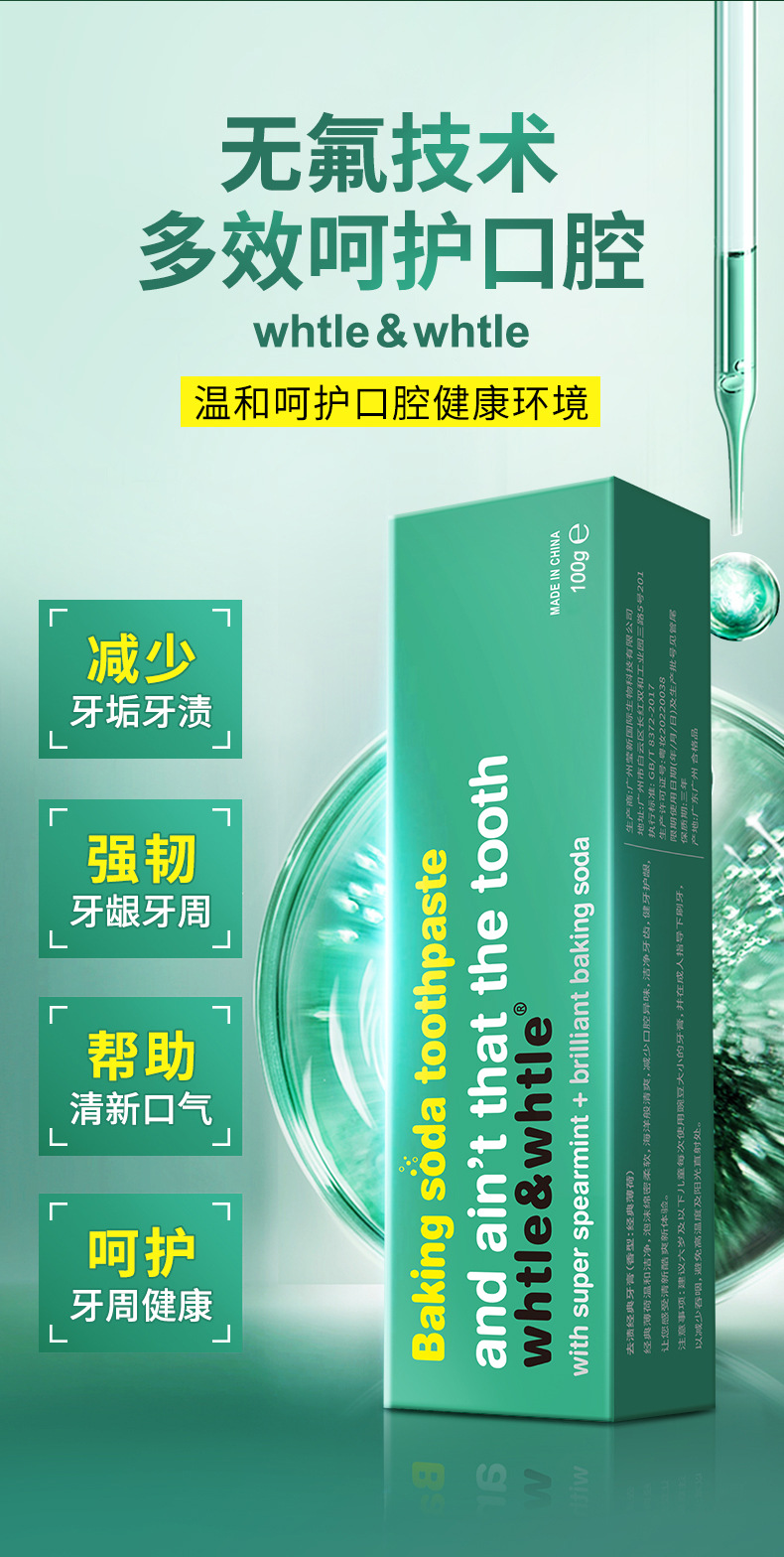 Whtle & whtle pasta de dientes con bicarbonato de soda, menta, aliento fresco, manchas, dientes brillantes, fabricantes genuinos al por mayor 100g