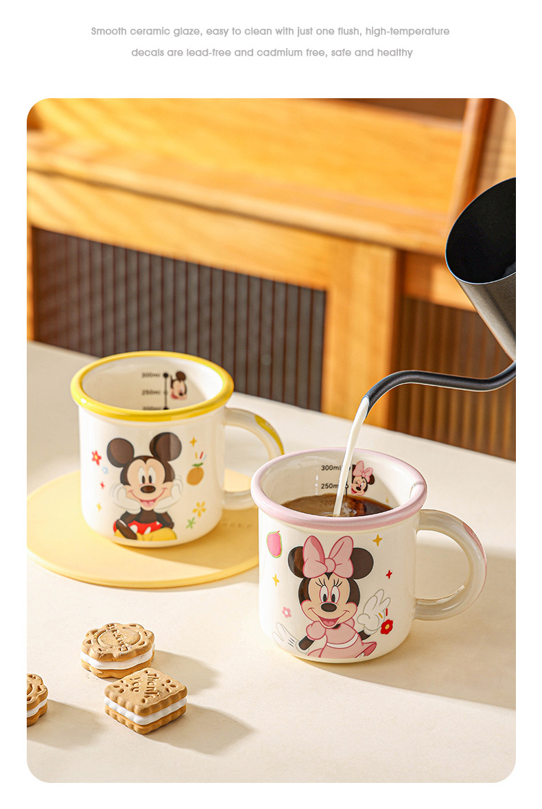 Disney nuevo dibujos animados de bordes anchos tazas de cerámica para niños caseros tazas de agua para beber tazas de leche de desayuno de alto valor facial