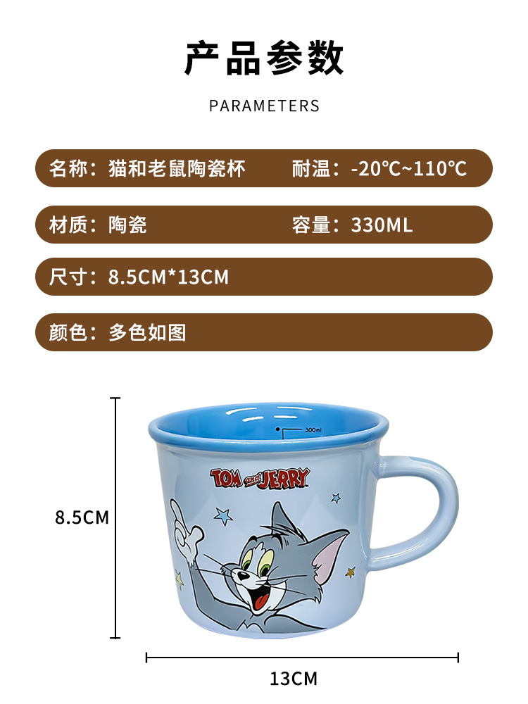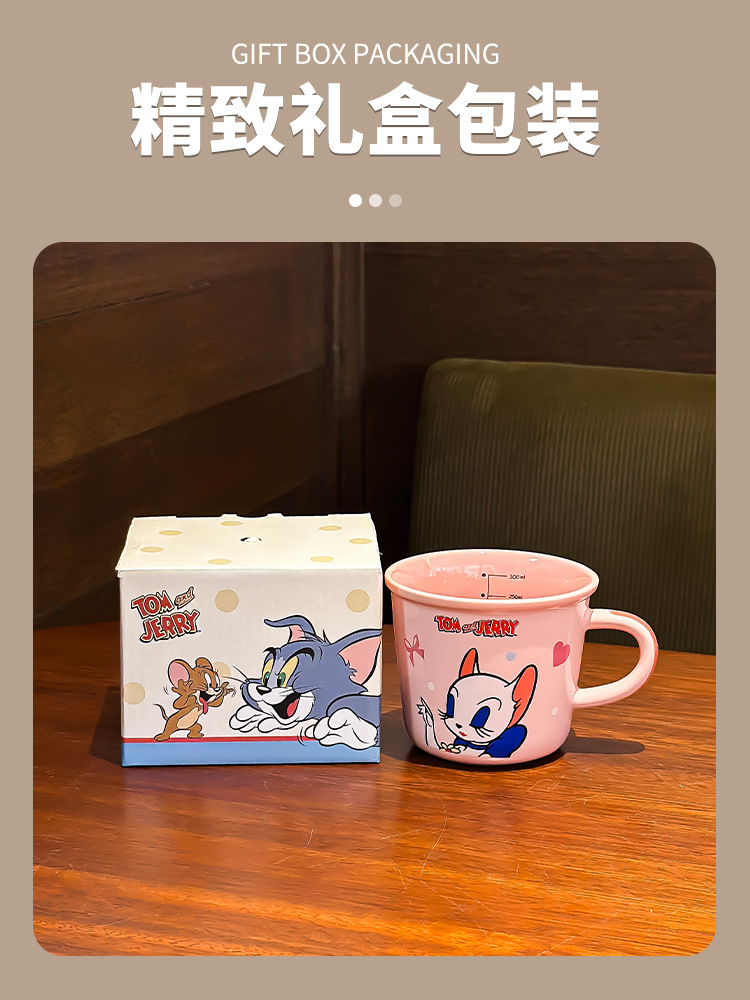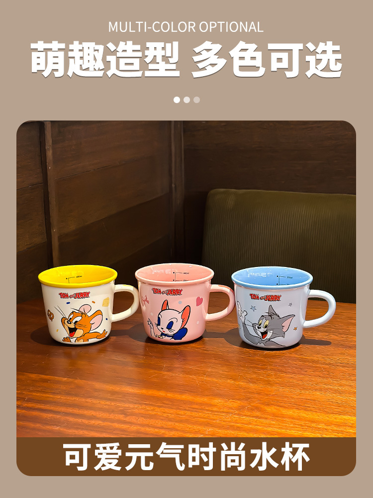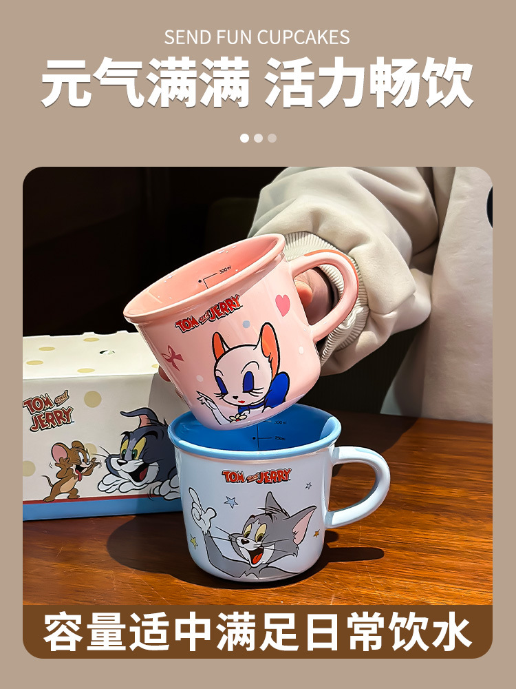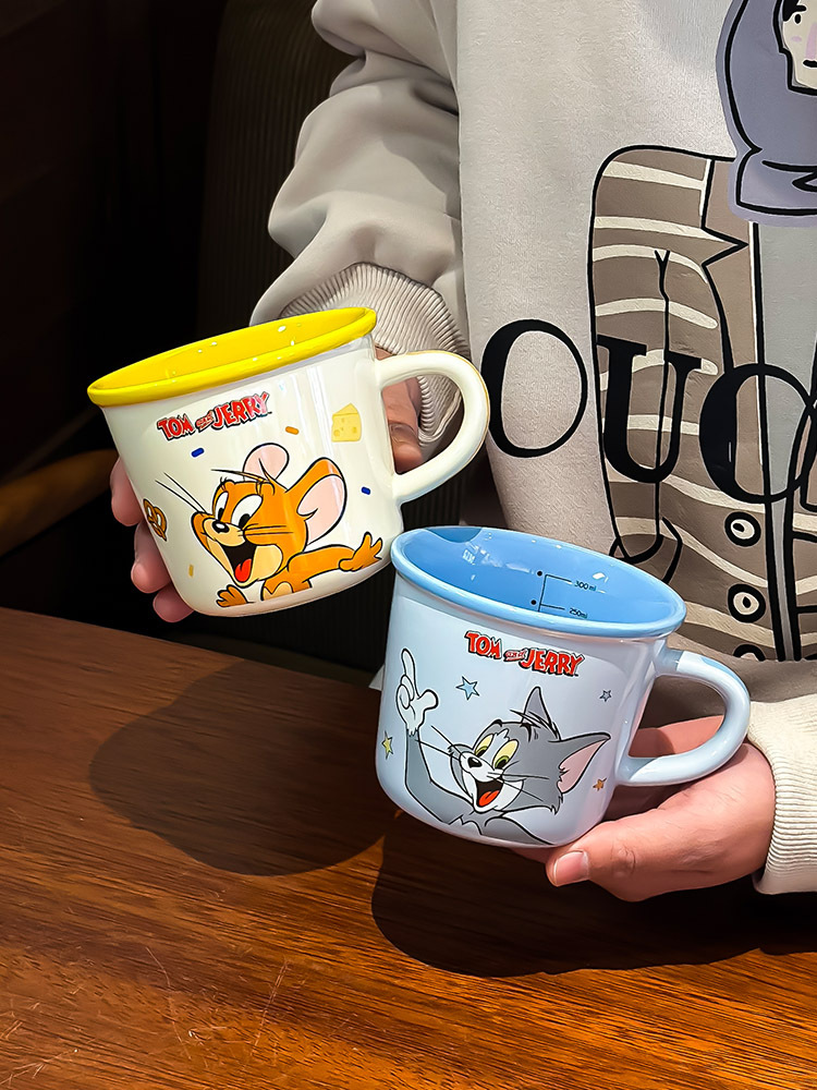 Gato y ratón tazas de marca de dibujos animados encantadores copas de agua tazas de cerámica domésticas tazas de café de oficina de alto valor facial