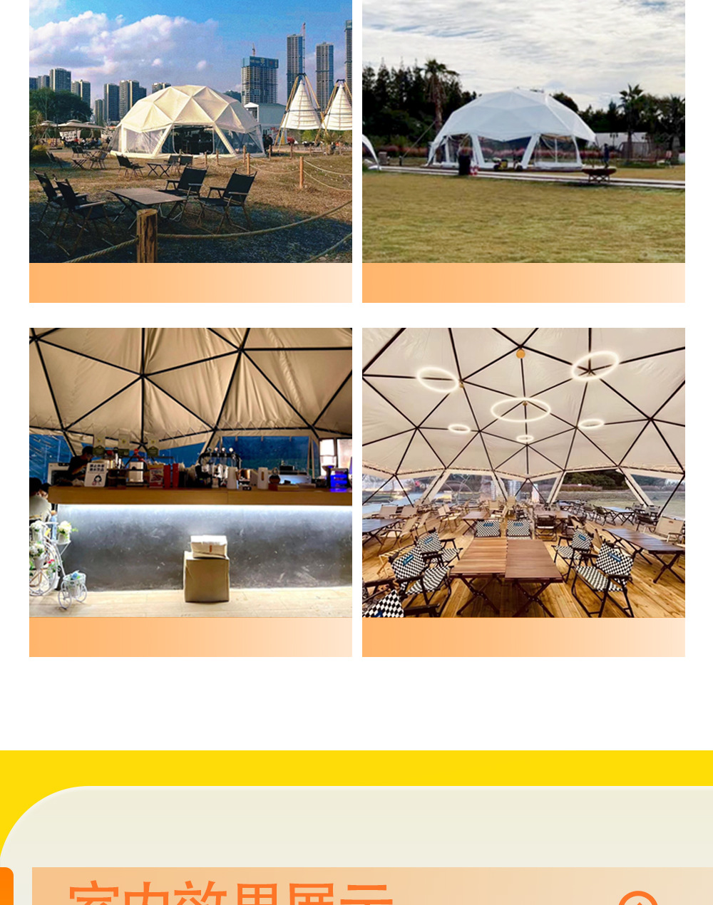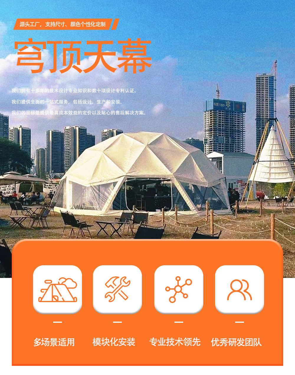 Campamento al aire libre Muye gran cúpula campamento tienda de techo gran esfera tienda de exhibición de sombra a prueba de lluvia