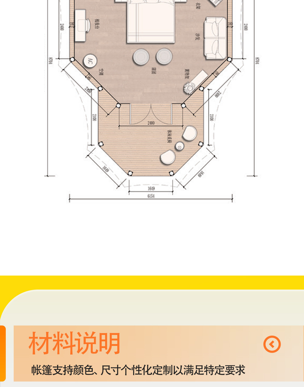 | Número de personas aplicables | 37 metros cuadrados, Plataforma de carpa 1,5 * 1,5 m / pieza |