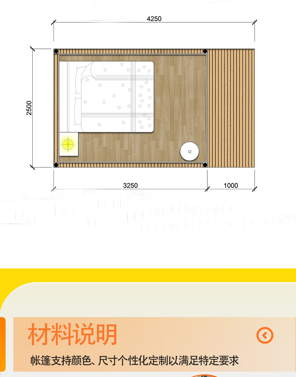 | Número de personas aplicables | 2.5x4.25m, Plataforma de tiendas de campaña |