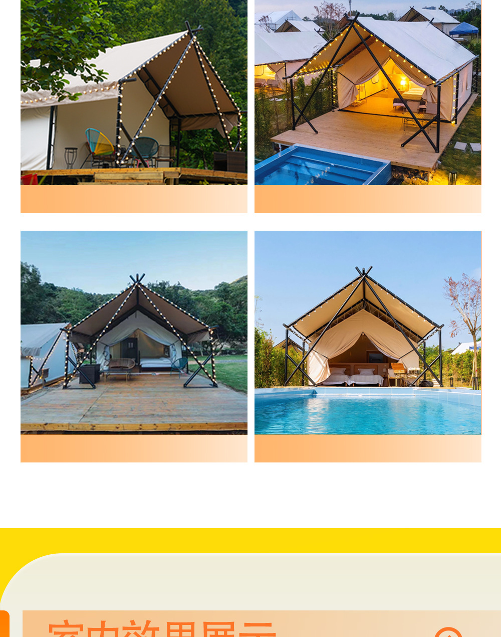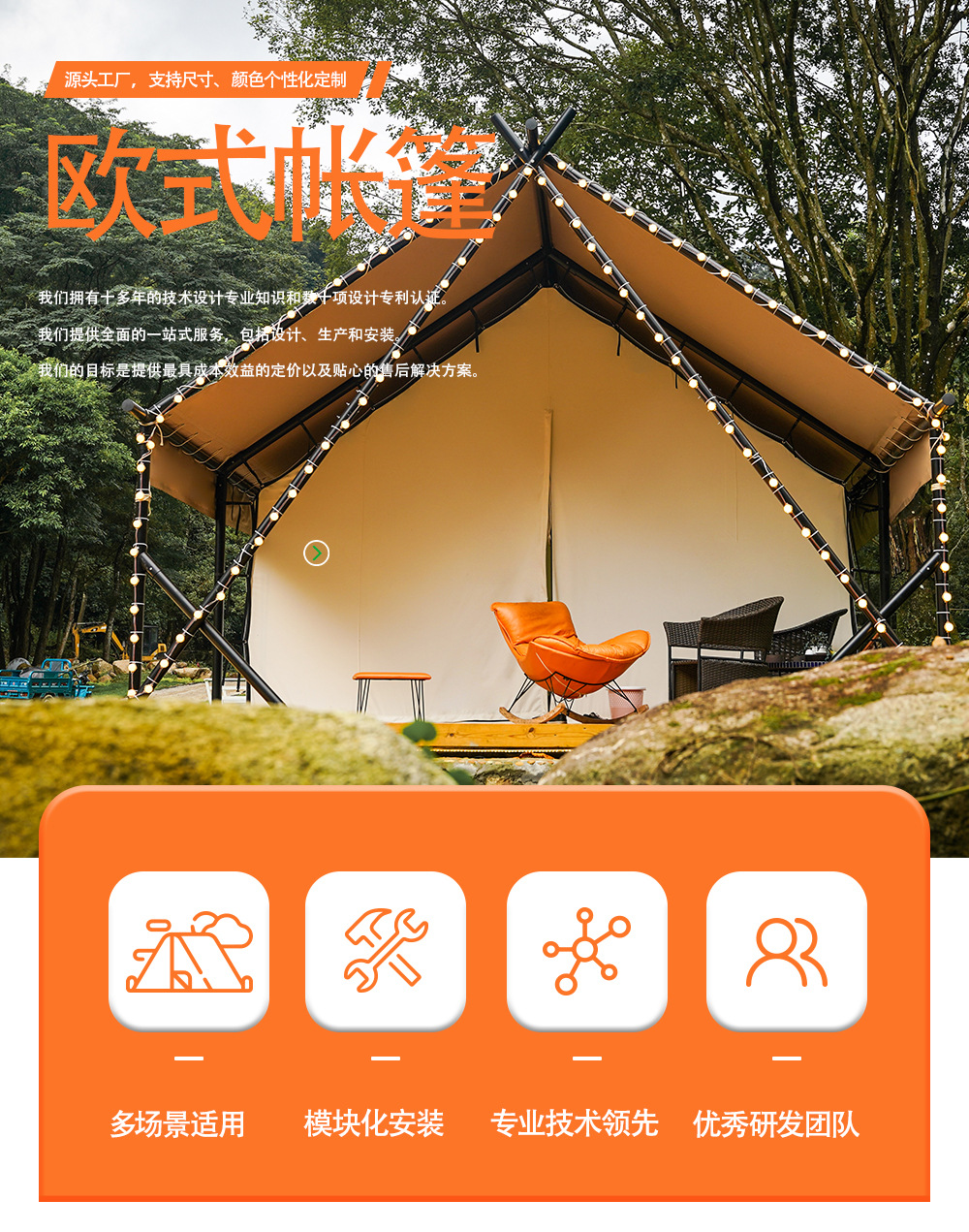 Muye acampar al aire libre poste grande carpa de doble capa campamento de hotel B & B tienda de techo fábrica a prueba de fuego y moho