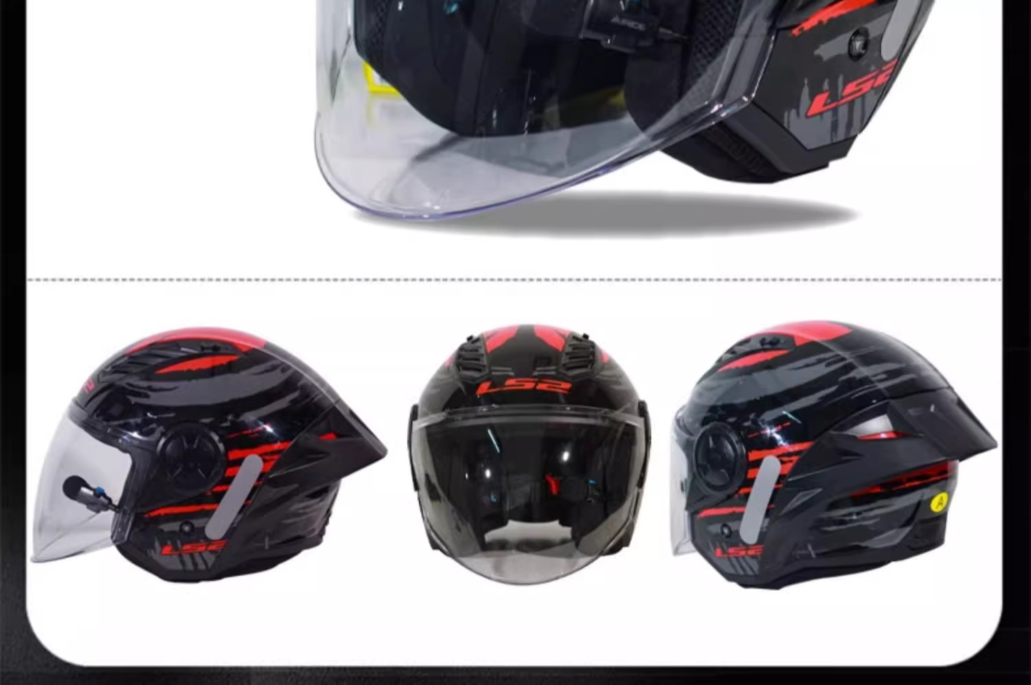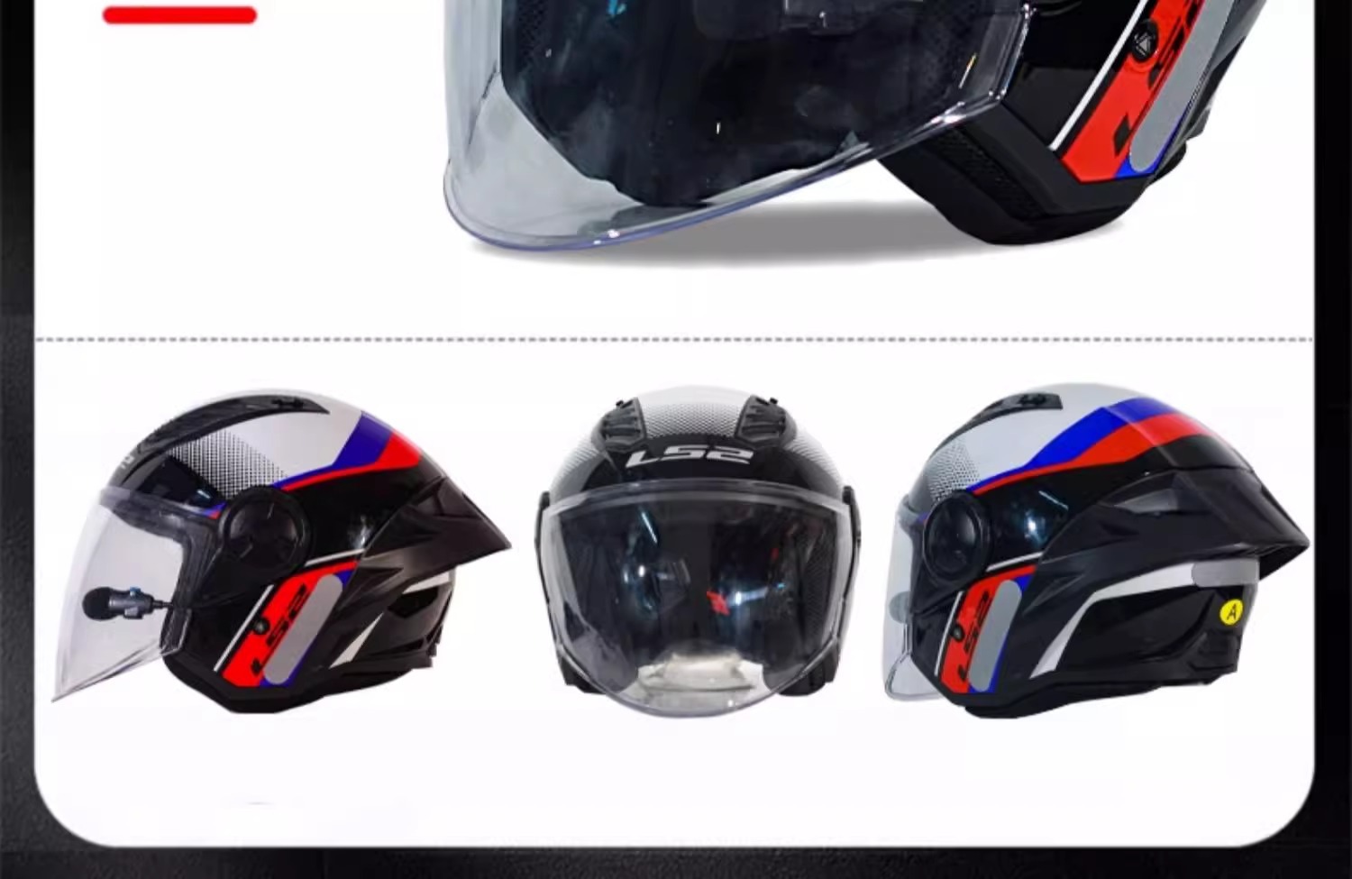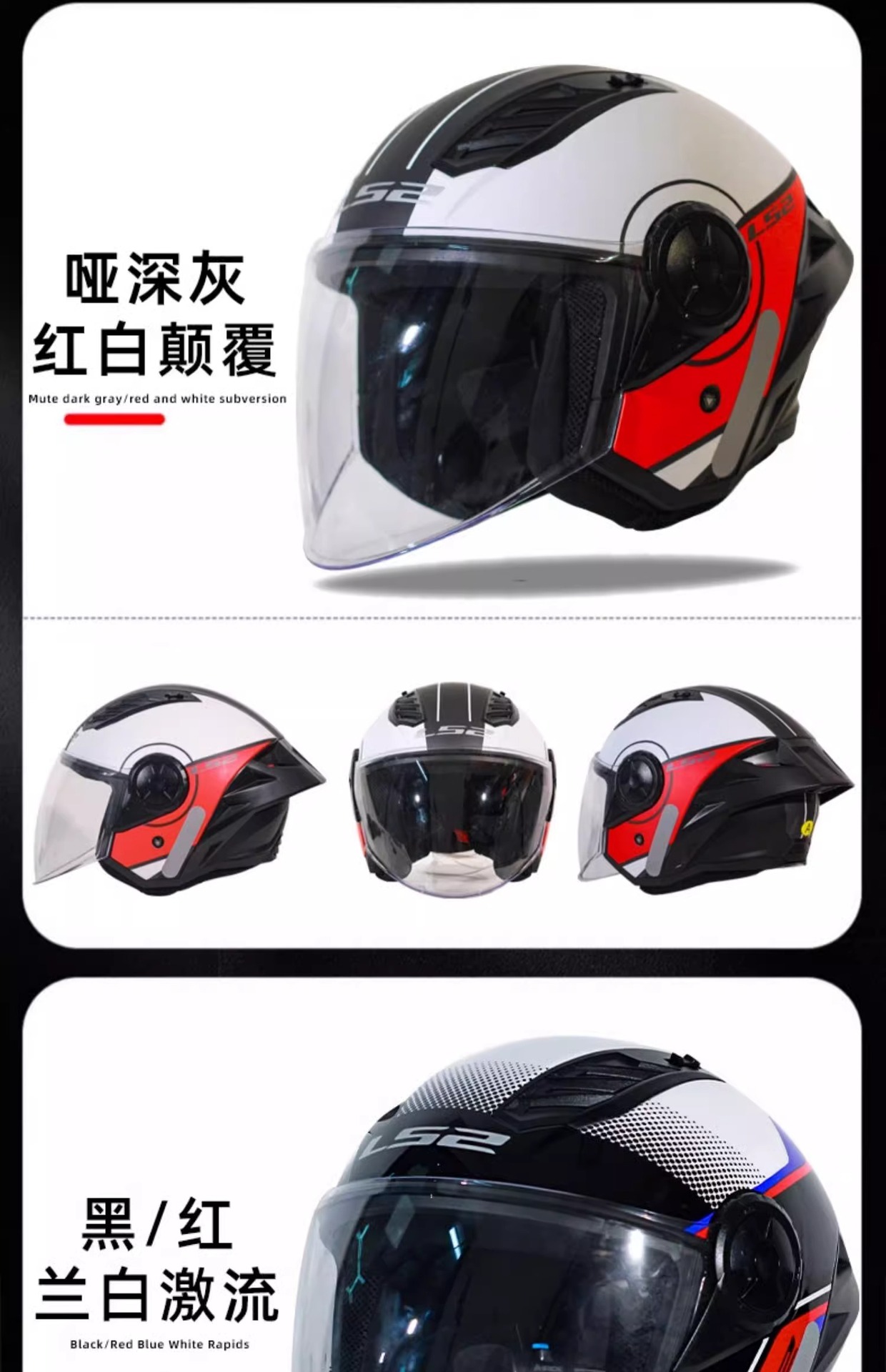LS2 casco de motocicleta hombre y mujer locomotora cuatro estaciones coches eléctricos medio casco scooter tres cuartos Bluetooth OF616