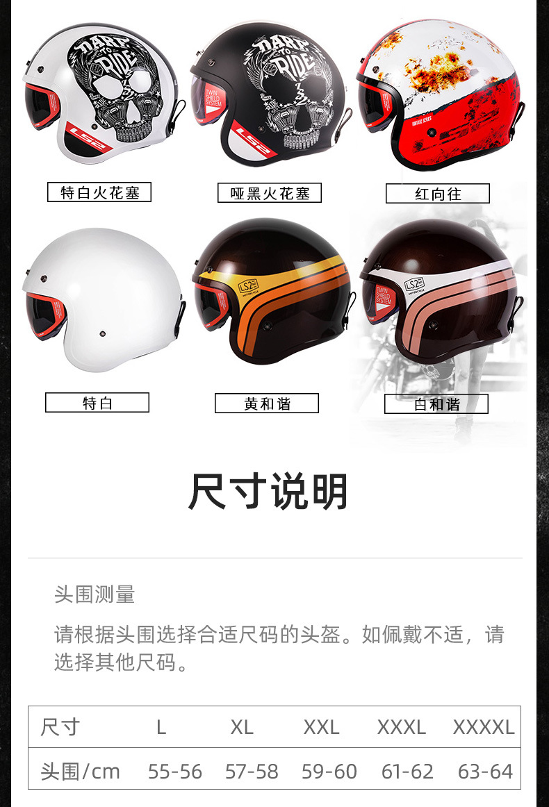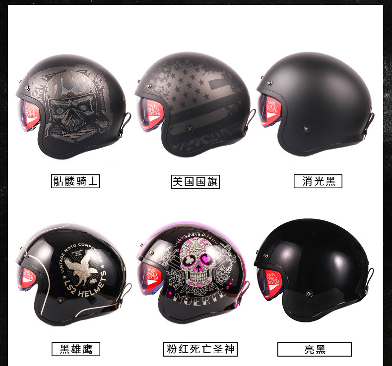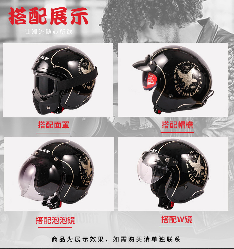 LS2 casco de la motocicleta retro medio casco Harley hombres y mujeres más tamaño motocicleta invierno medio cubierto cuatro estaciones pedal OF599