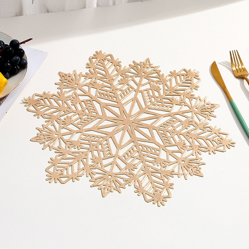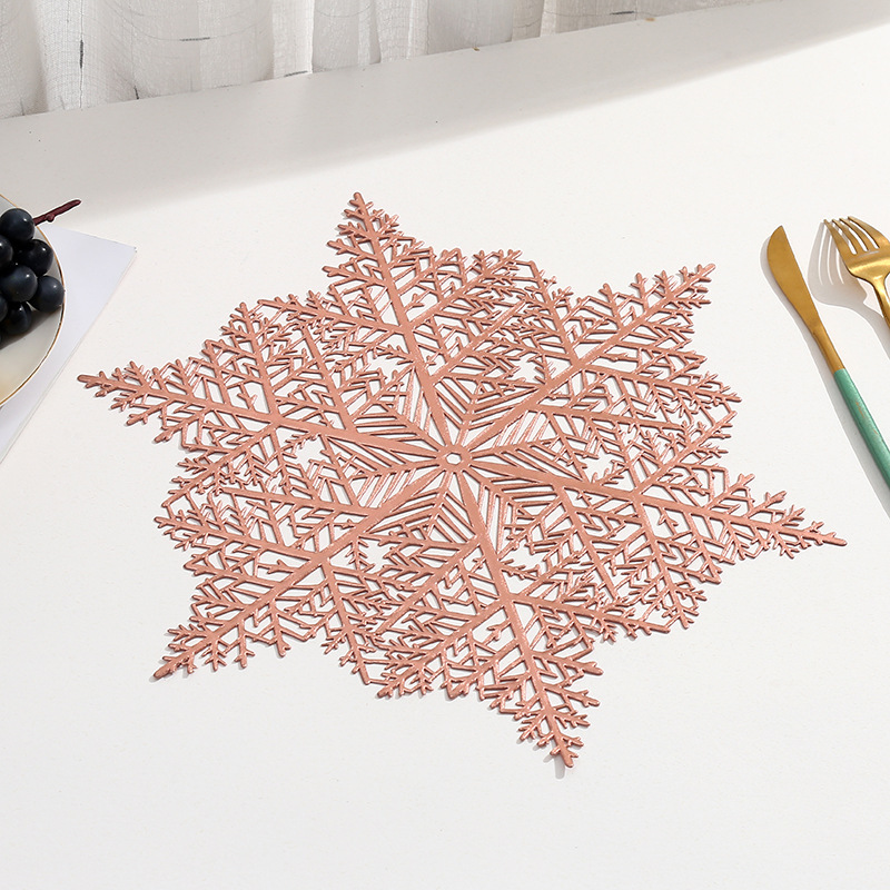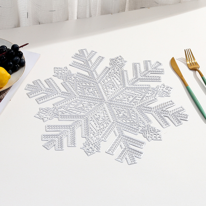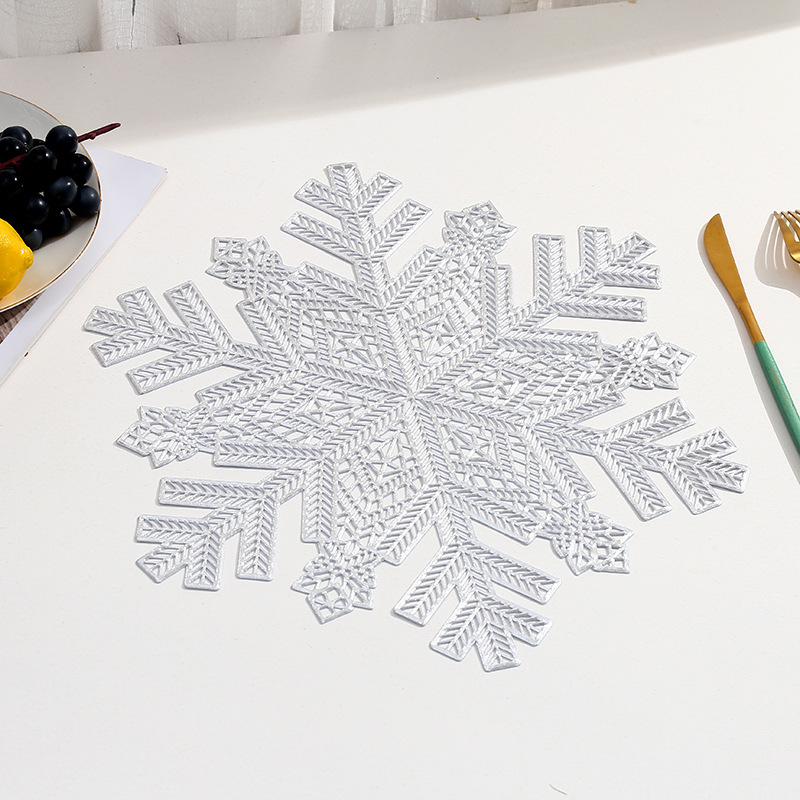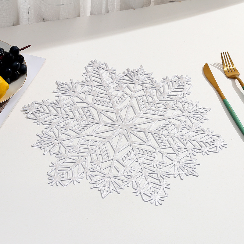 Copo de nieve de Navidad transfronterizo mantel de pvc decoración de restaurante de Navidad restaurante occidental bronceado tapete de mesa hueca al por mayor