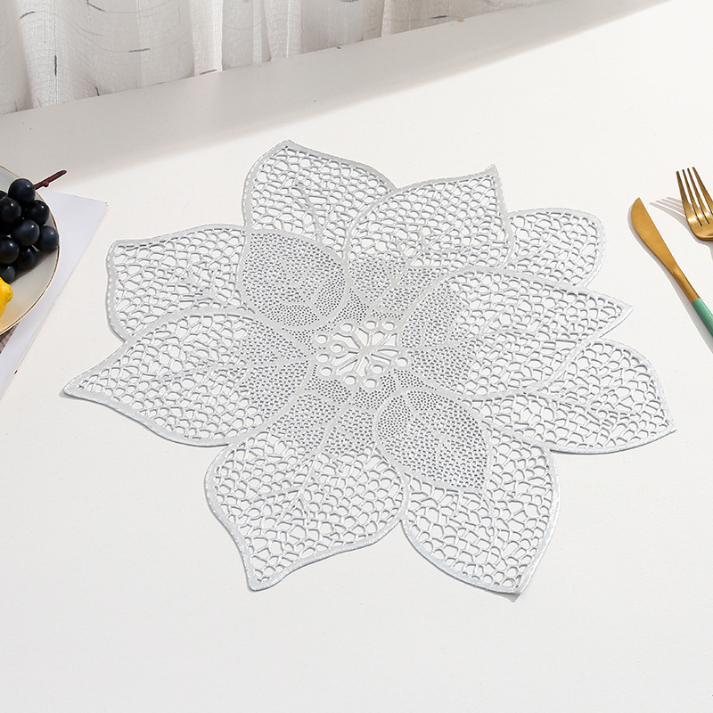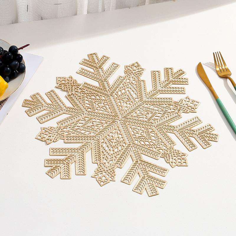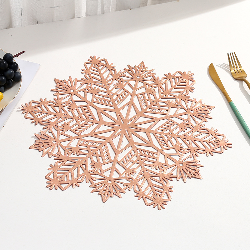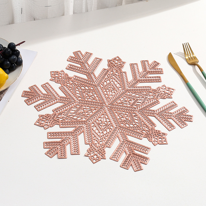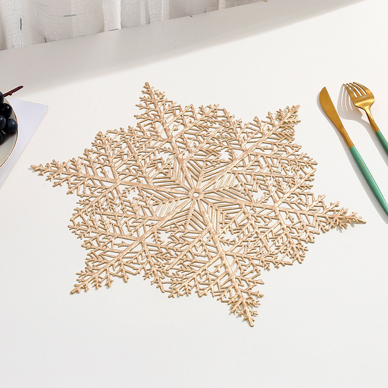Copo de nieve de Navidad transfronterizo mantel de pvc decoración de restaurante de Navidad restaurante occidental bronceado tapete de mesa hueca al por mayor