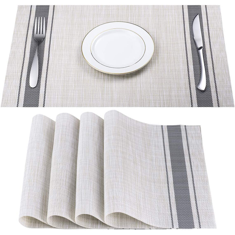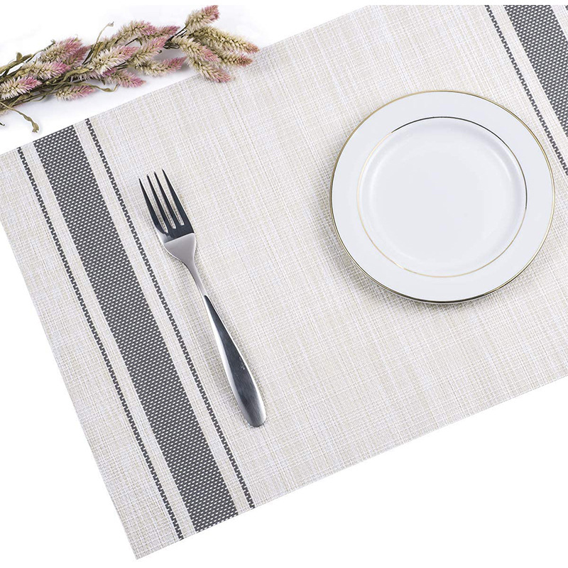 Mantel de PVC Lino japonés raya antideslizante mantel fácil limpieza trenzado occidental alimentos calor aislamiento estera montaña tabla bandera