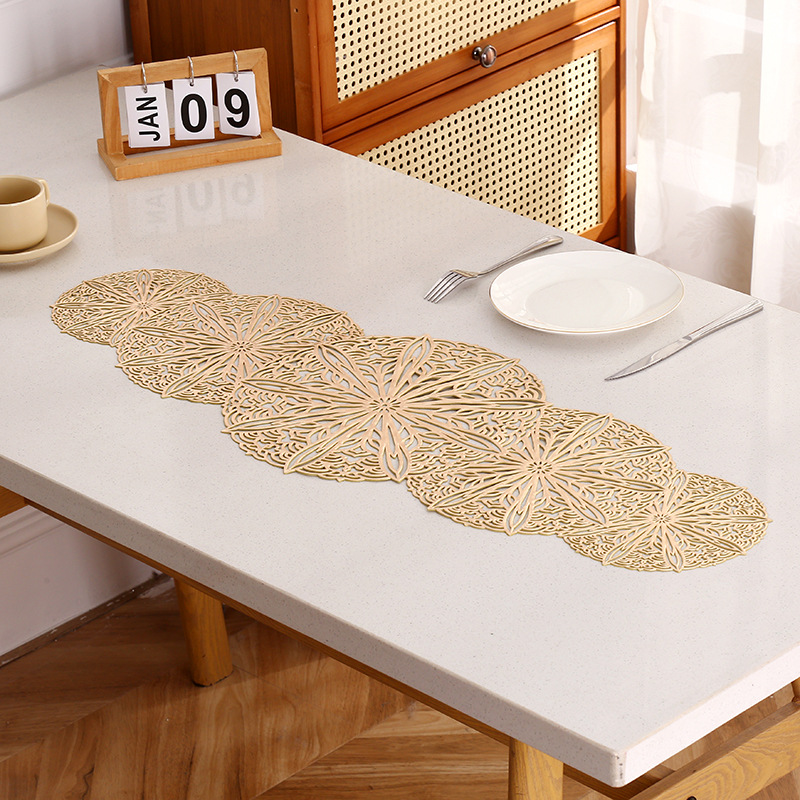Alfombrilla de mesa de lujo ligera de estilo europeo, impermeable y a prueba de aceite, bandera de mesa de PVC, diseño hueco, manteles individuales de estilo INS, manteles de mesa de centro, fabricantes al por mayor
