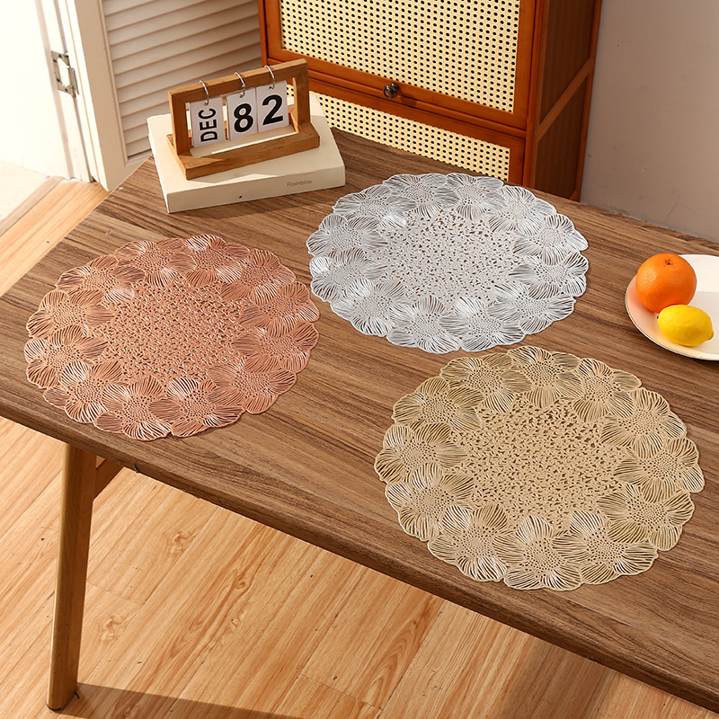 Transfronterizo Amazon anillo de flor redonda hoja PVC mantel mantel creativo pétalo de alta calidad ligero restaurante de lujo cojín de aislamiento al por mayor