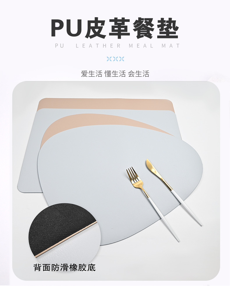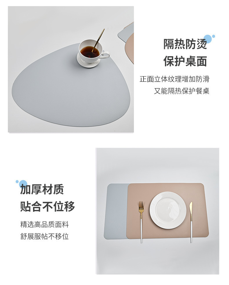 Cojín de cuero PU, almohadilla de mesa antideslizante, almohadilla de aislamiento térmico a prueba de agua, almohadilla de taza, gota de agua simple, almohadilla de comedor occidental sólida