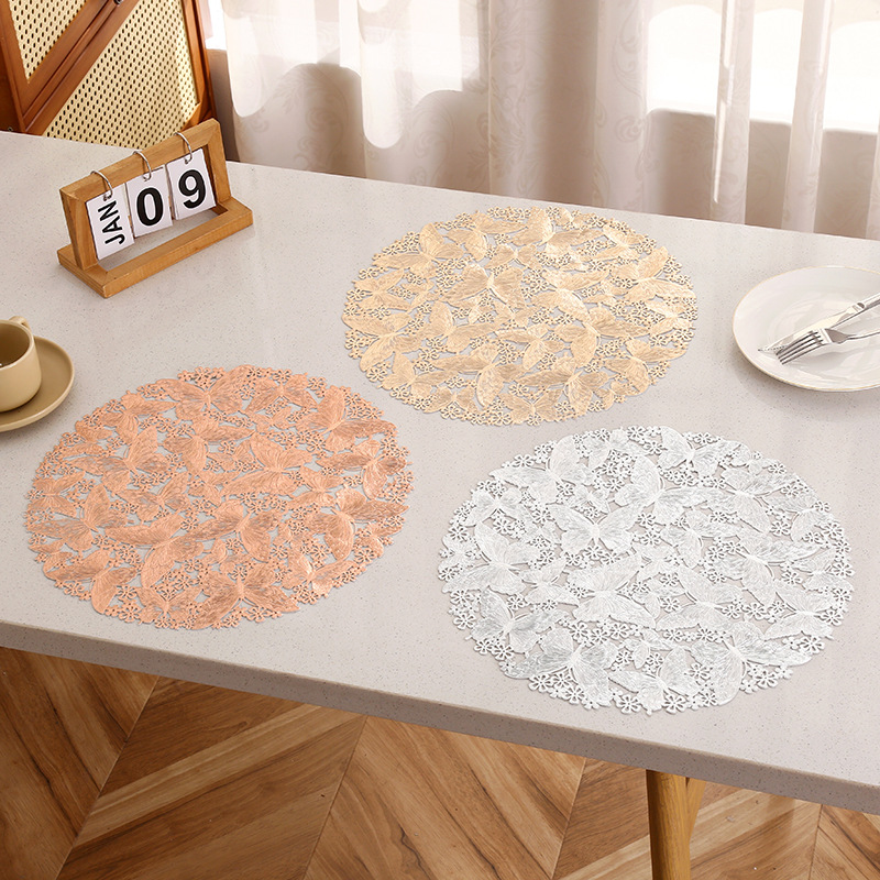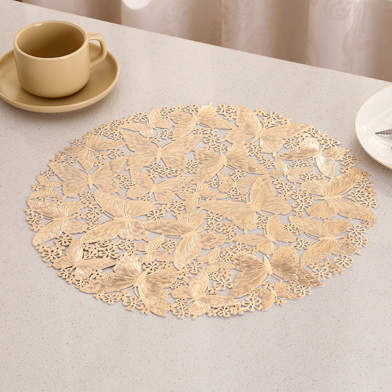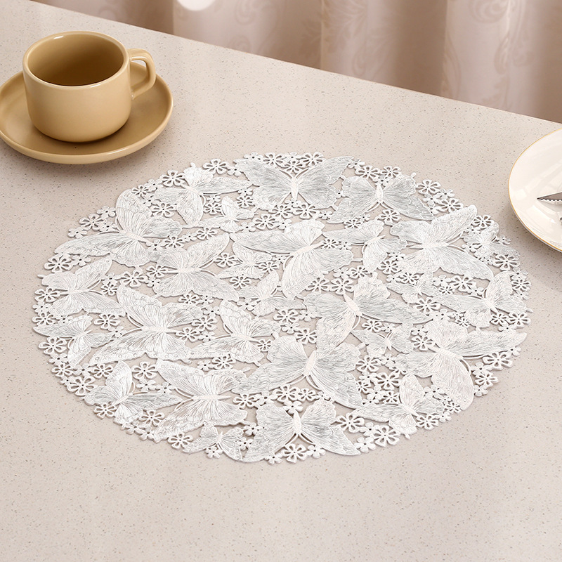 Diseño hueco de fábrica mariposa almohadilla impermeable a prueba de agua a prueba de aceite PVC almohadilla de taza de lujo ligera europea almohadilla de mesa INS almohadilla al por mayor