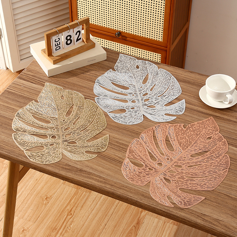 Mantel de PVC en forma de hoja romántica francesa, diseño de hoja creativa, cojín de aislamiento de restaurante de lujo simple y ligero, cojín impermeable