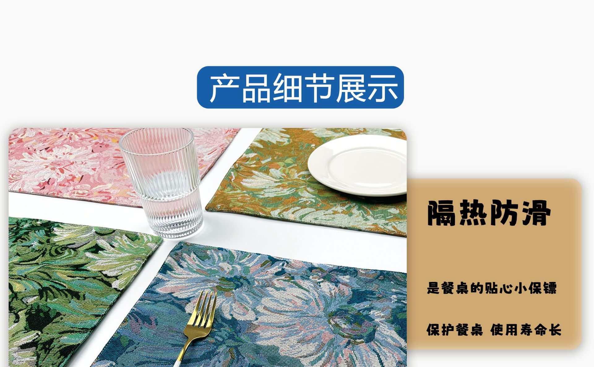 Nuevo jacquard pintura al óleo placemat Monet crisantemo vintage occidental placemat estera de aislamiento térmico anti-scald Hotel posavasos estera de mesa