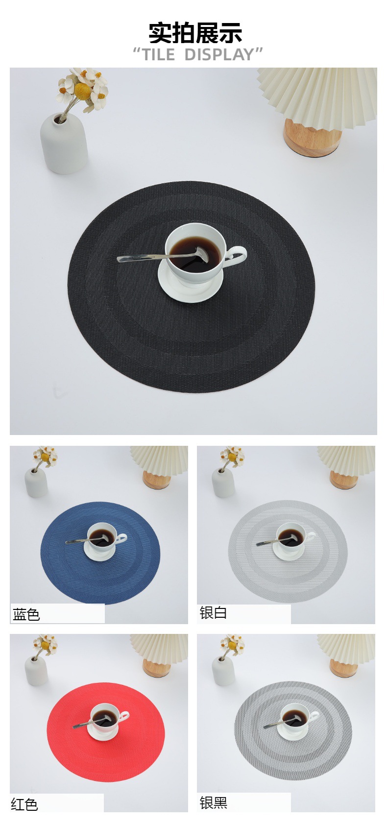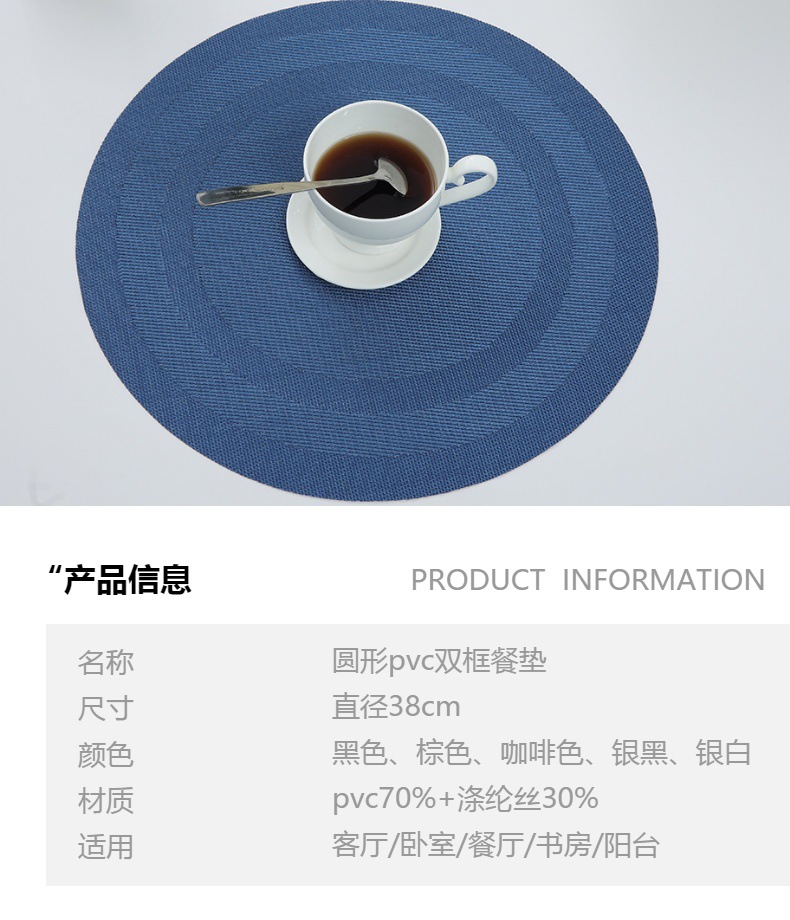 Transfronterizo doble marco redondo placemat pvc tejido occidental placemat antideslizante aislamiento térmico estera de café lavable estera de placa al por mayor