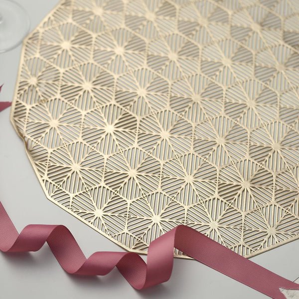 Polígono bronceado mantel hueco de oro y plata hexagonal antideslizante estera de la tabla de montaña estera de aislamiento decorativo occidental al por mayor