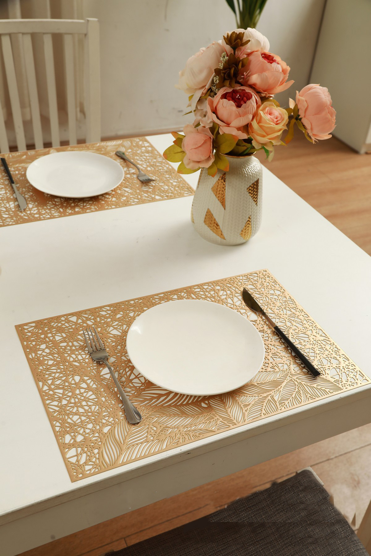 Paso en Venta caliente estilo simple mantel aislamiento occidental mantel nuevo oro PVC restaurante café estera decorativa al por mayor