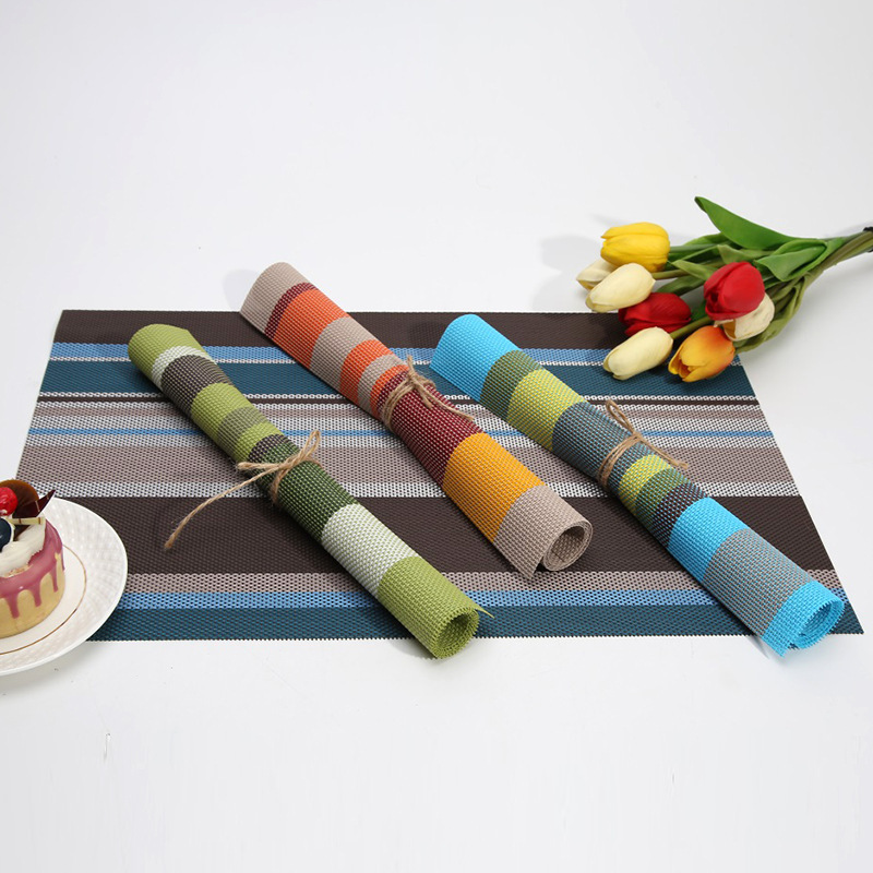 Estilo nórdico a rayas de PVC placemat Teslin estera de mesa posavasos estera de la placa lavable aislamiento térmico antideslizante estera al por mayor