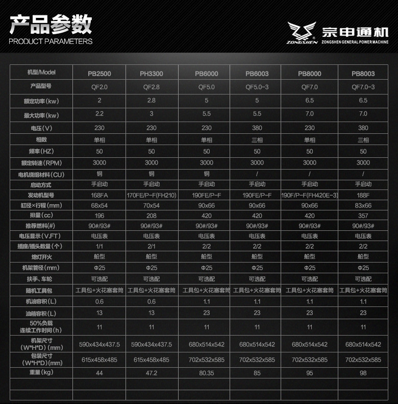 | Número de artículo | Grupo electrógeno de gasolina zongshen de 8kw |